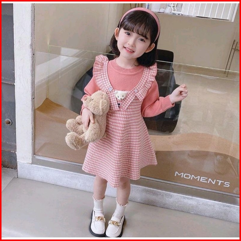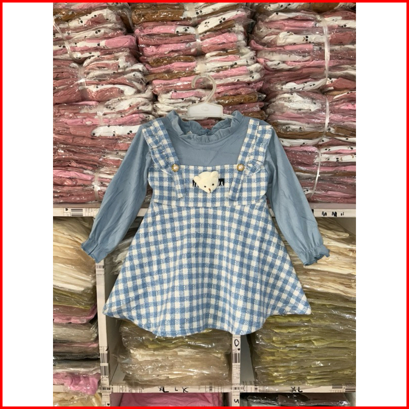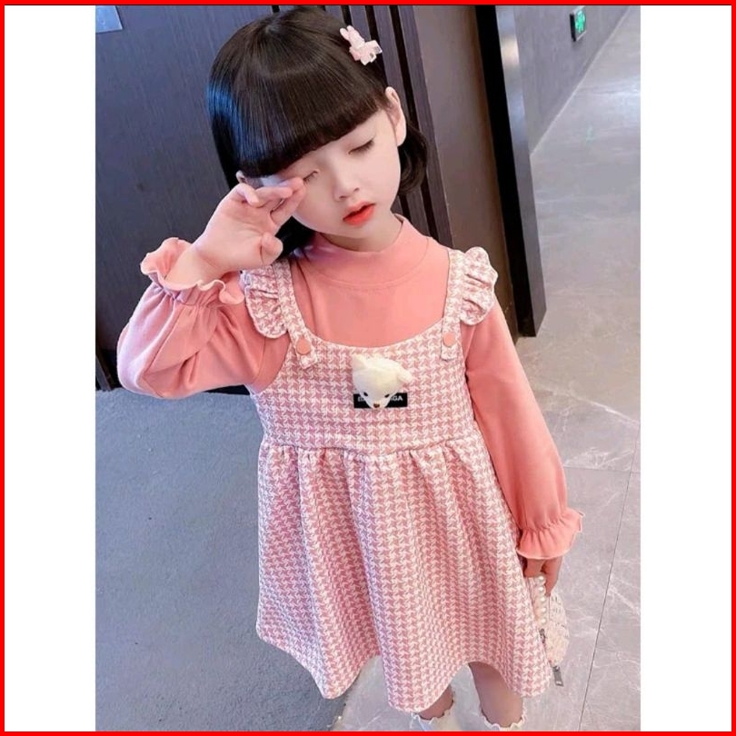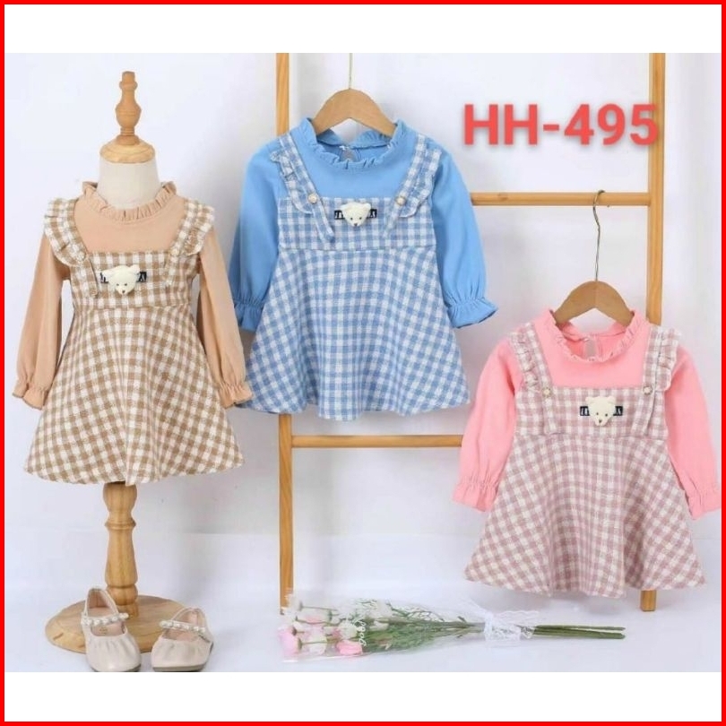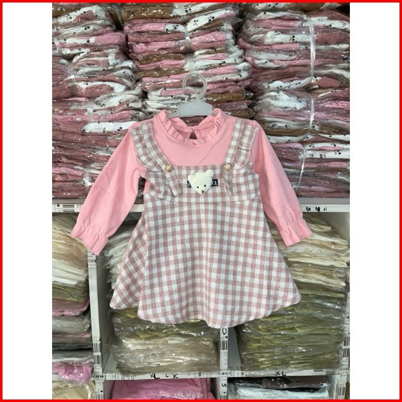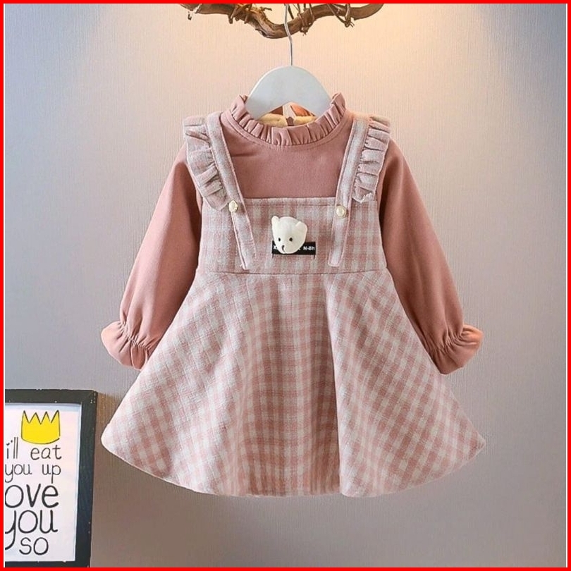 Inesra - Gaun Dress Motif Kotak Import Lengan Panjang Inesra Fashion -dres Anak Perempuan Import Premium Usia 3 Bulan -4