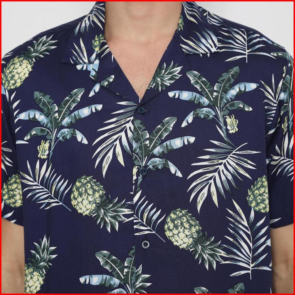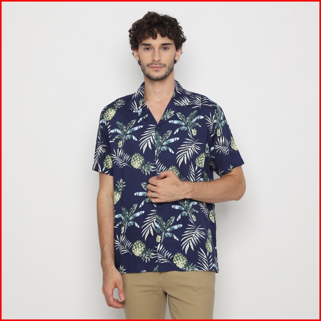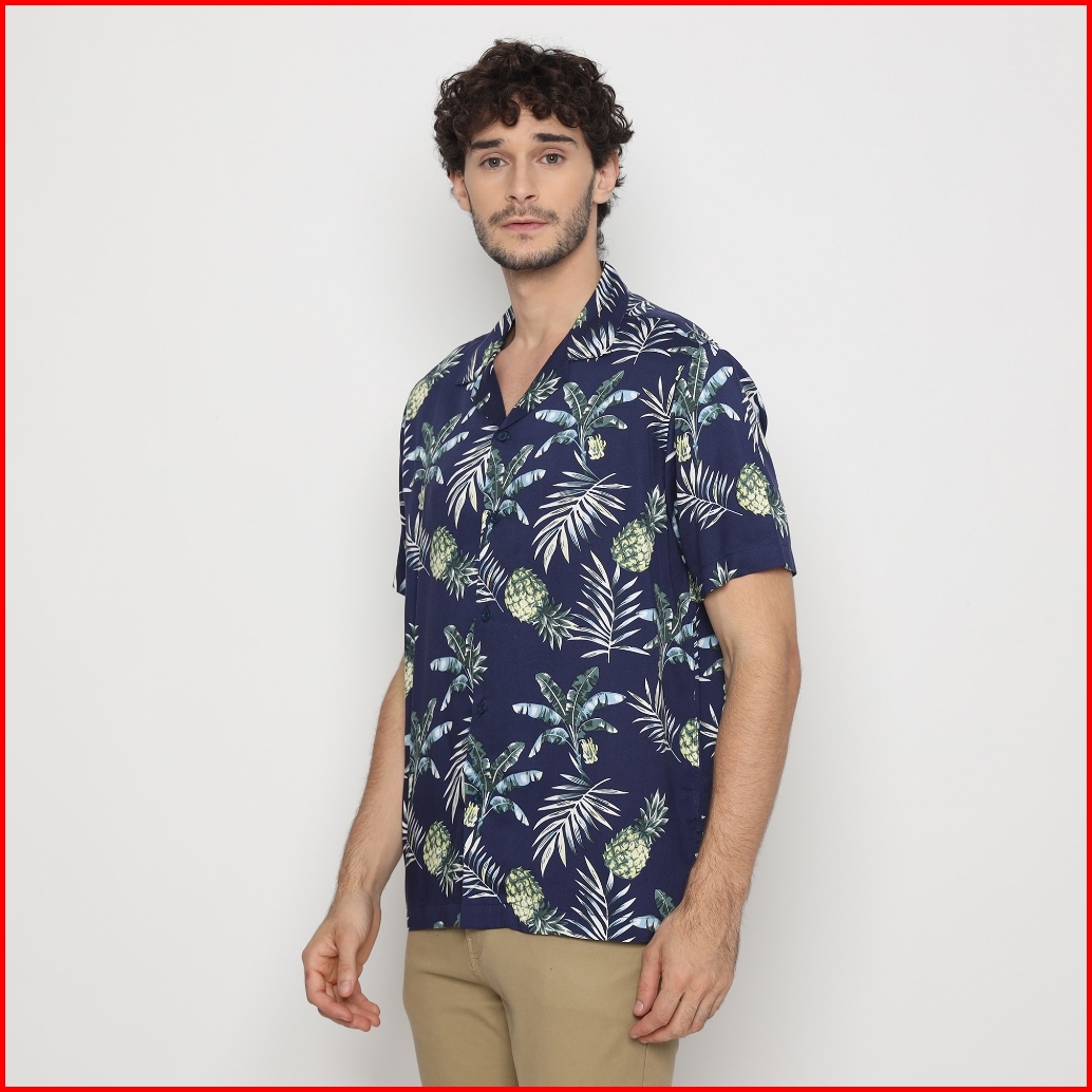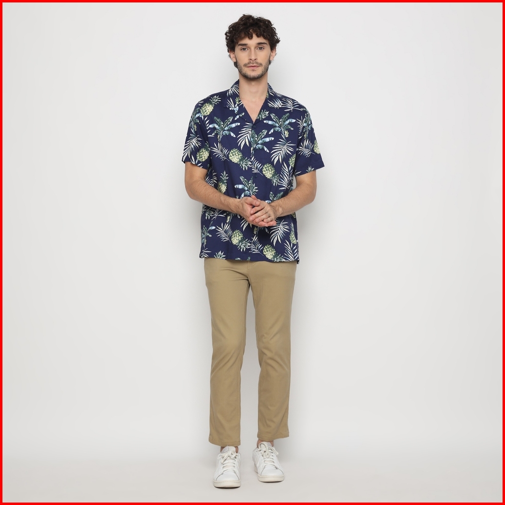 Platini Kemeja Motif Pria Lengan Pendek Katun Navy 73458