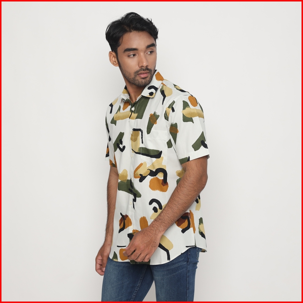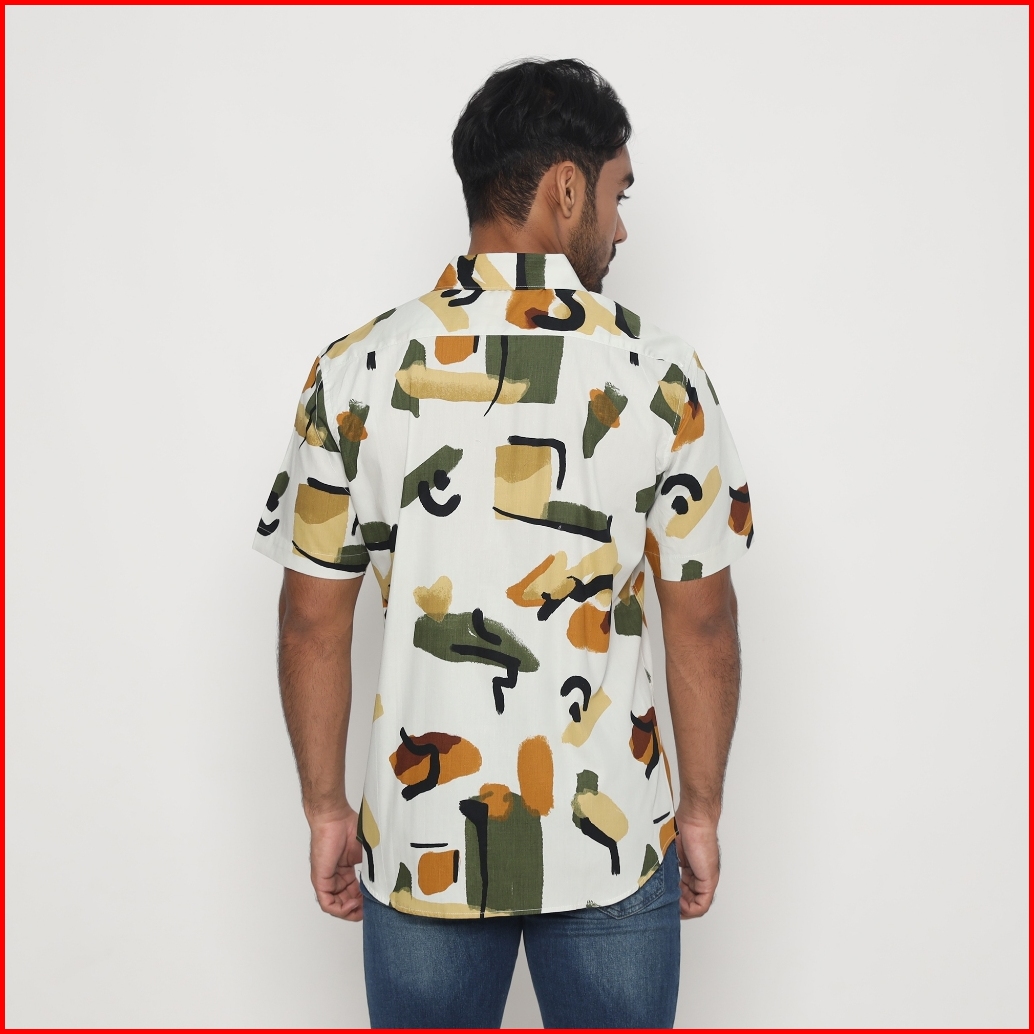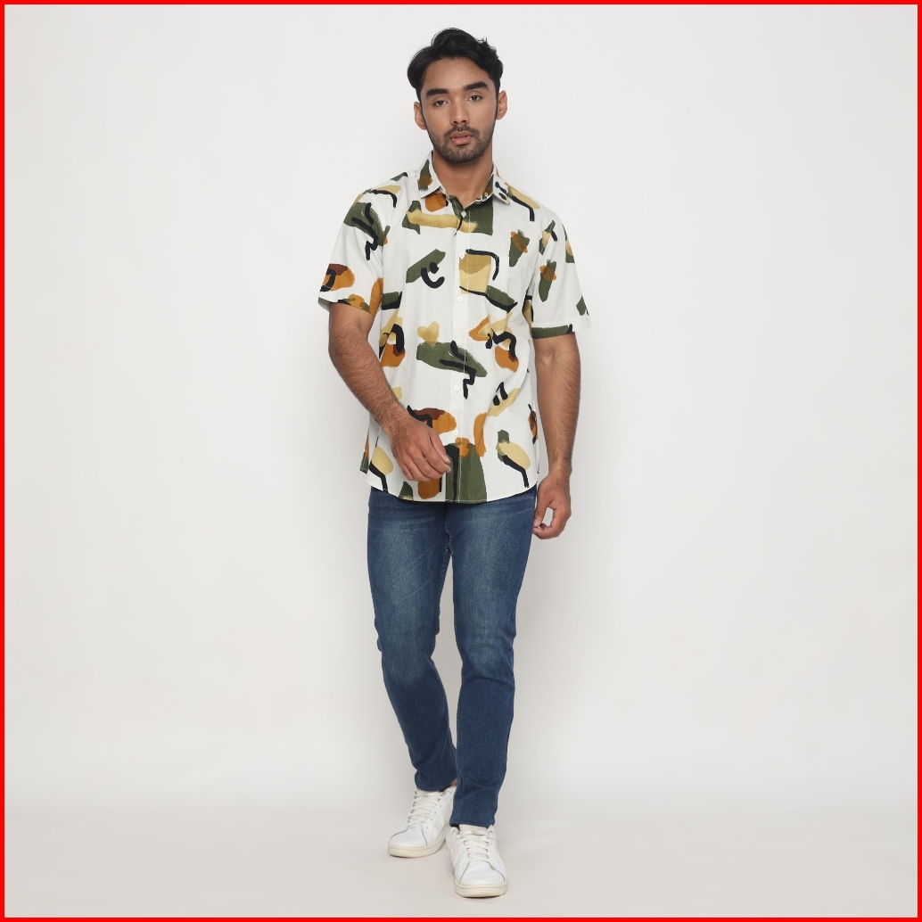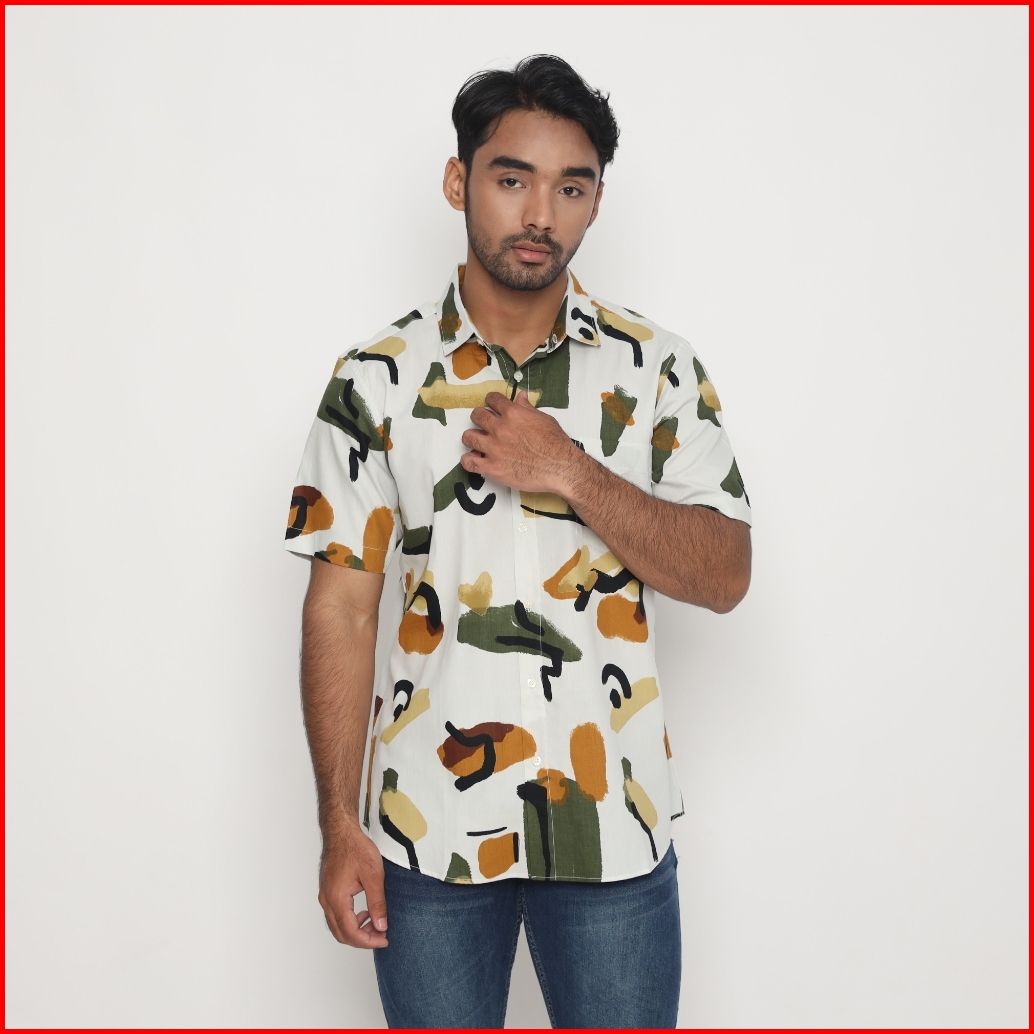 Platini Kemeja Motif Pria Lengan Pendek Katun Hijau 132185