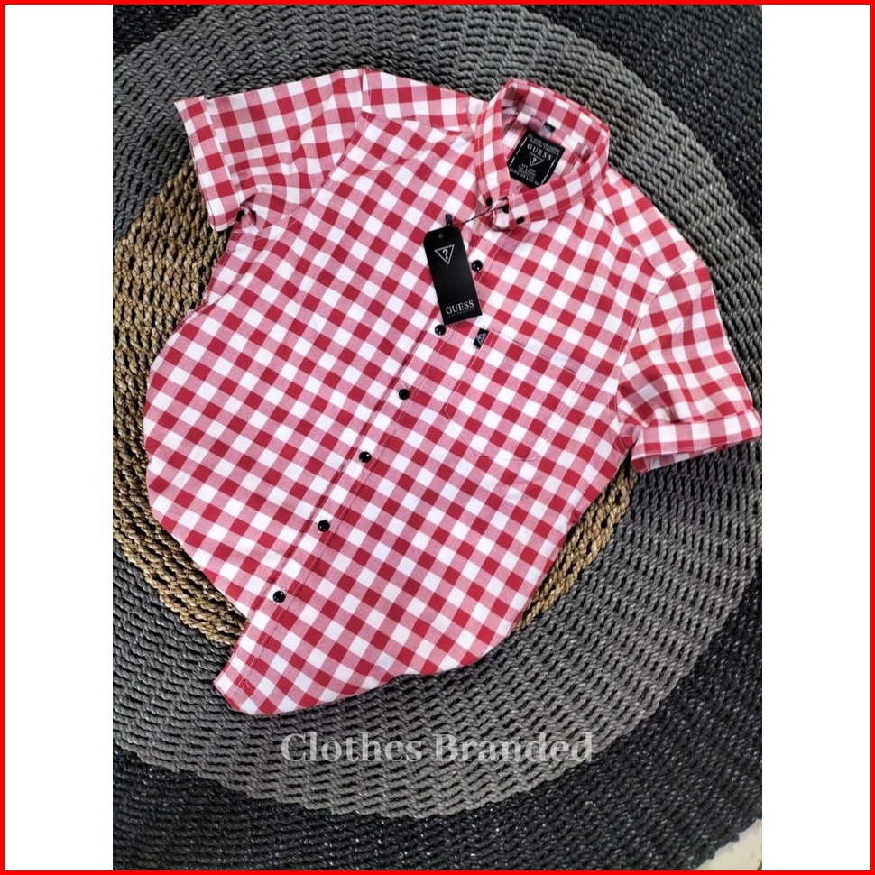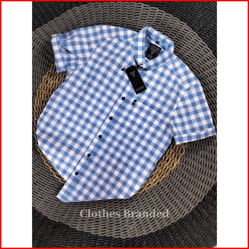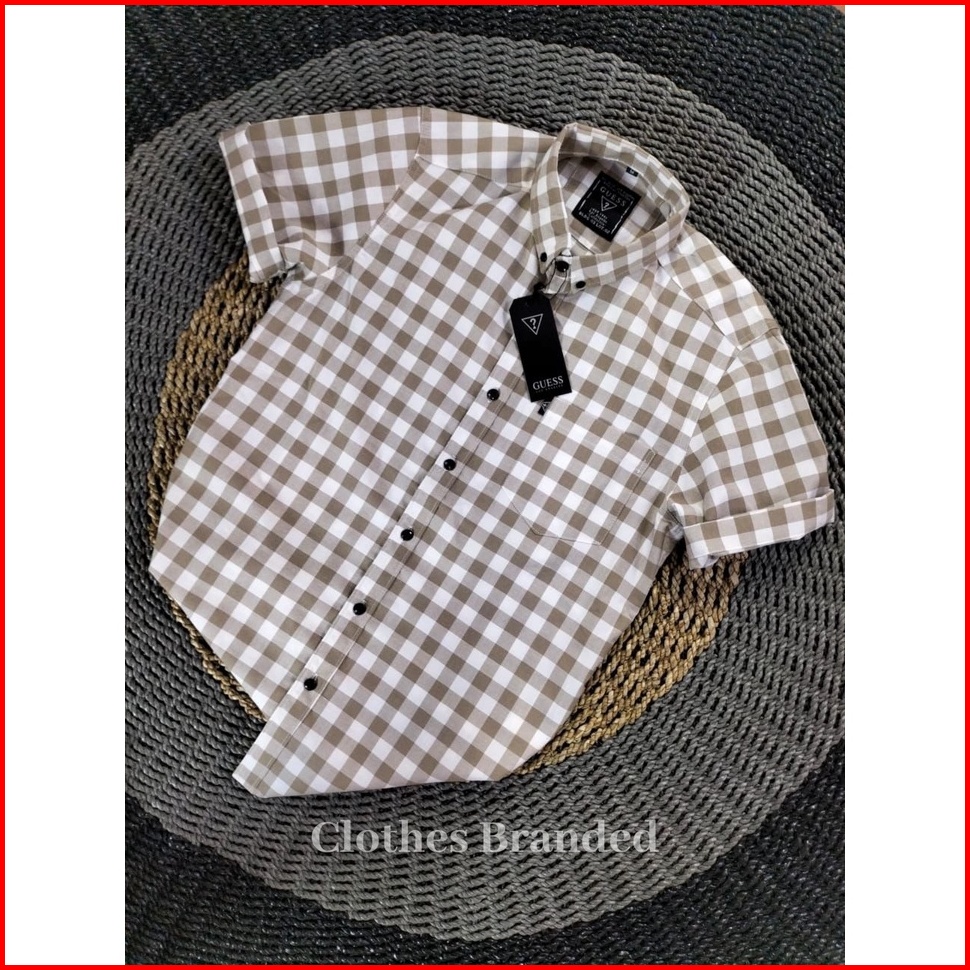 Kemeja Guess Pria Lengan Pendek Kemeja Kotak-kotak Pria Terbaru Kemeja Casual Pria Slim Fitt Kemeja Pria Full Catton