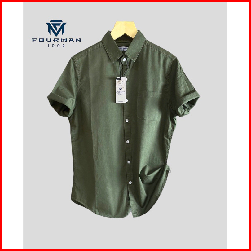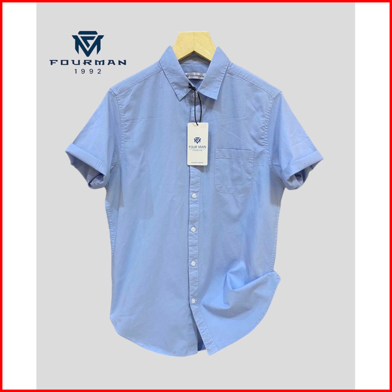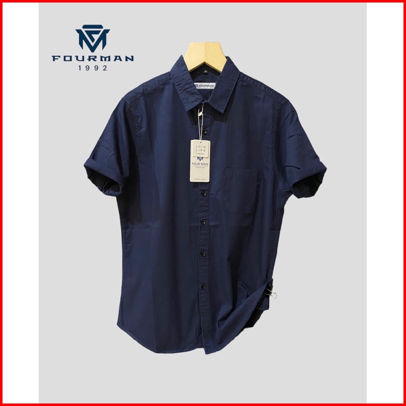 Fourman Kemeja Pendek Putih Kemeja Pendek Kerah Kemeja Pendek Pria Bahan Katun Swiding