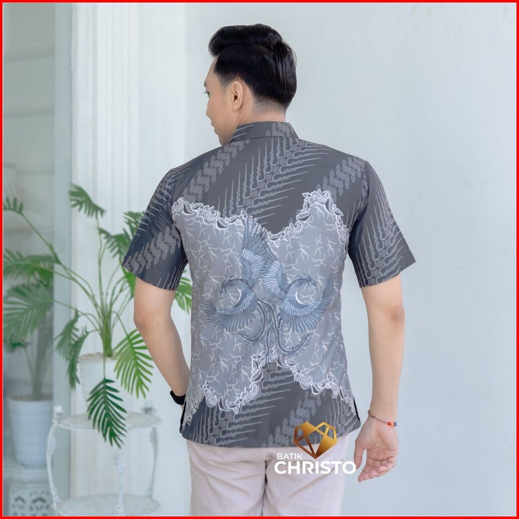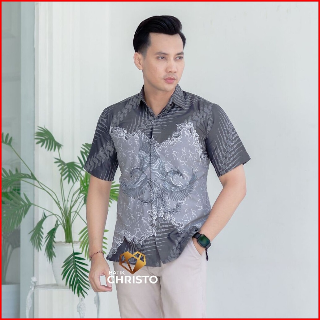 Kemeja Batik Pria Baju Lengan Pendek Slimfit Lapis Furing Batik Christo Pd1063 Bahan Katun Premium Elegan Motif Formal W