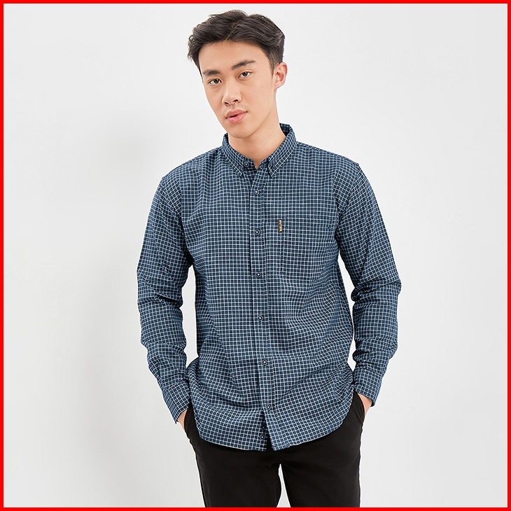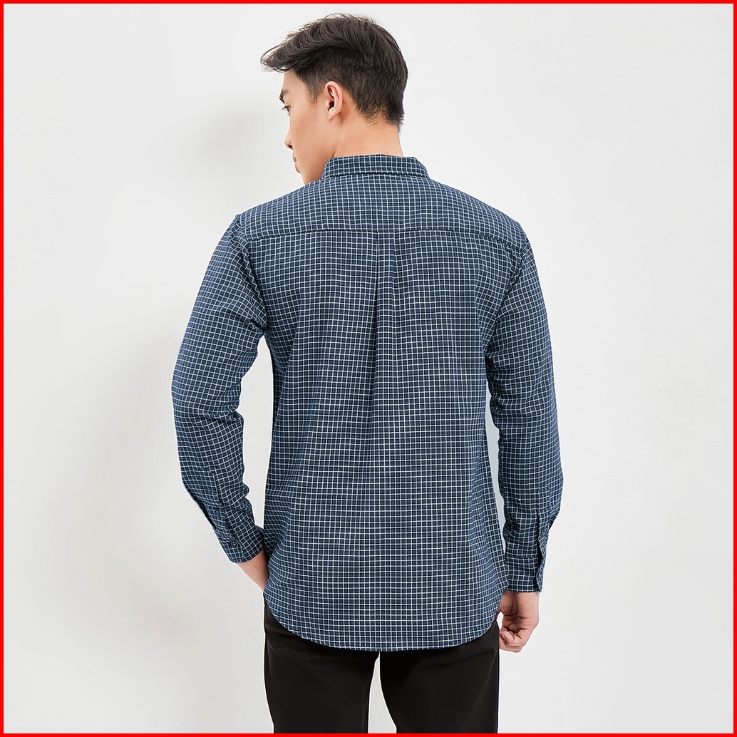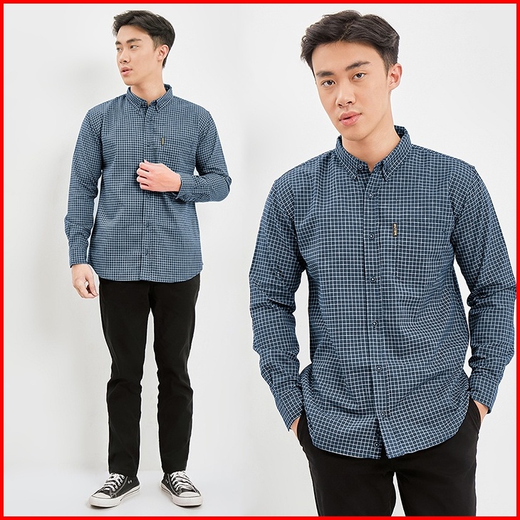 Guten Inc - Kemeja Lengan Panjang Pria Hilton Navy Plaid Oxford Shirt