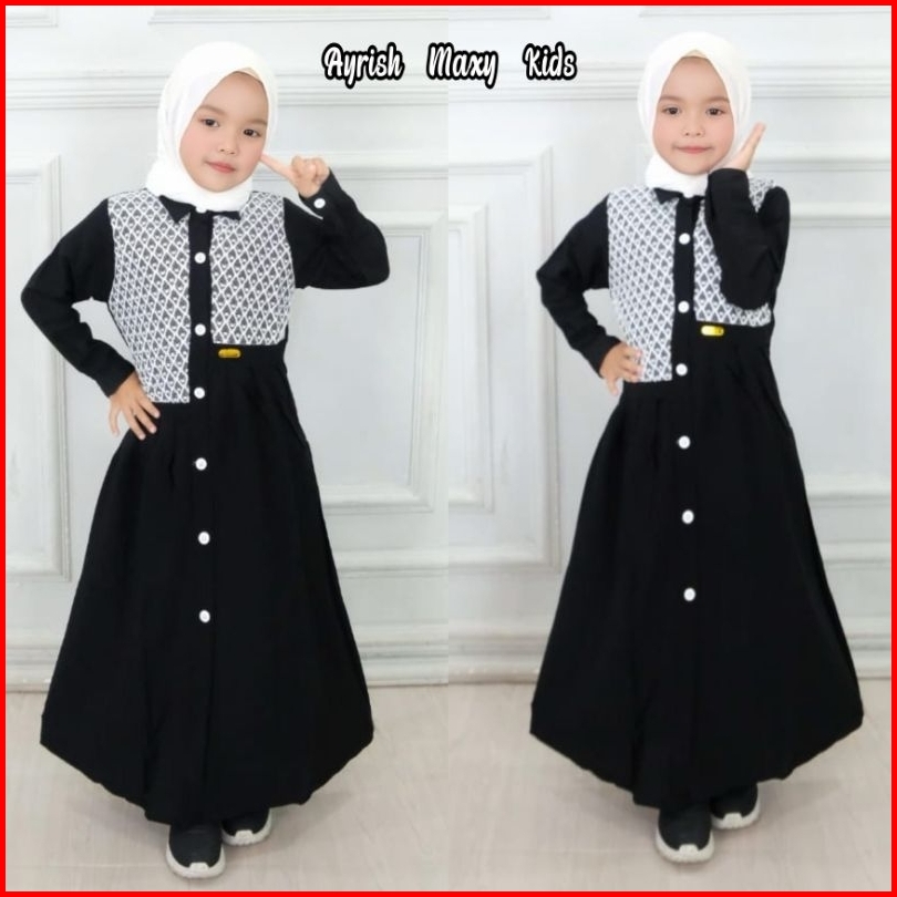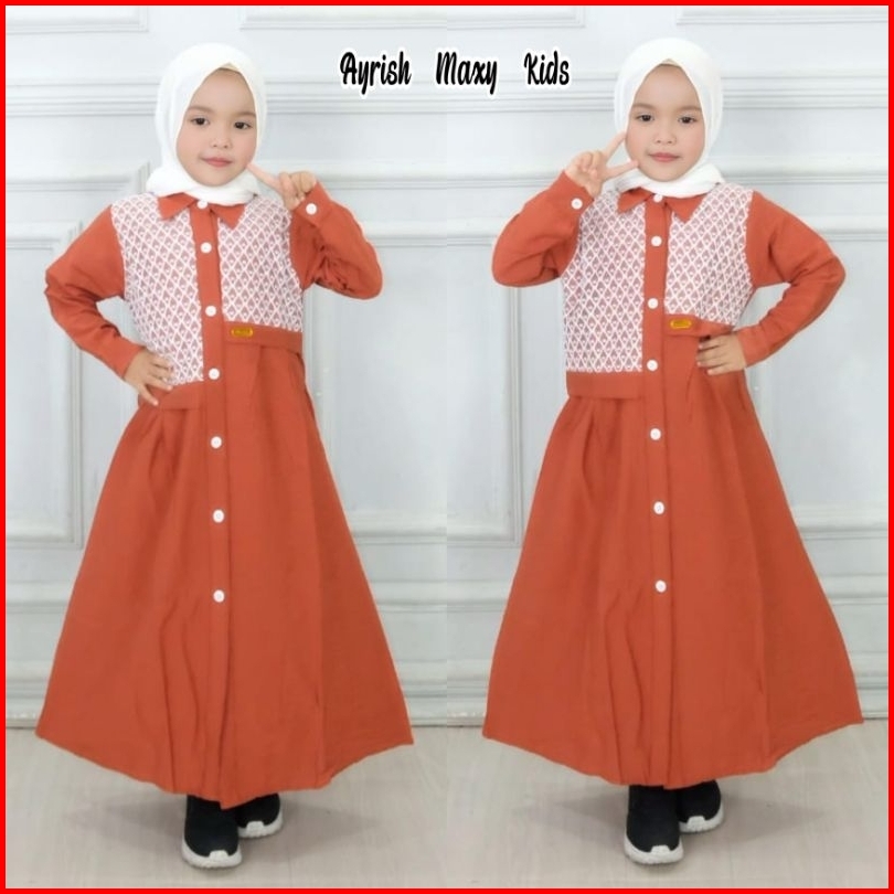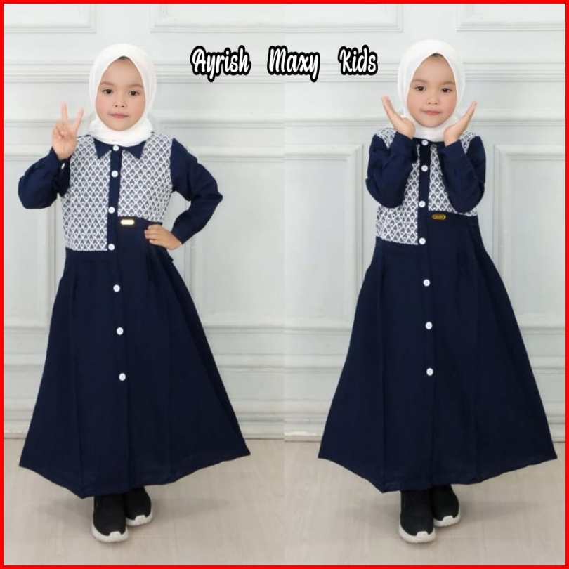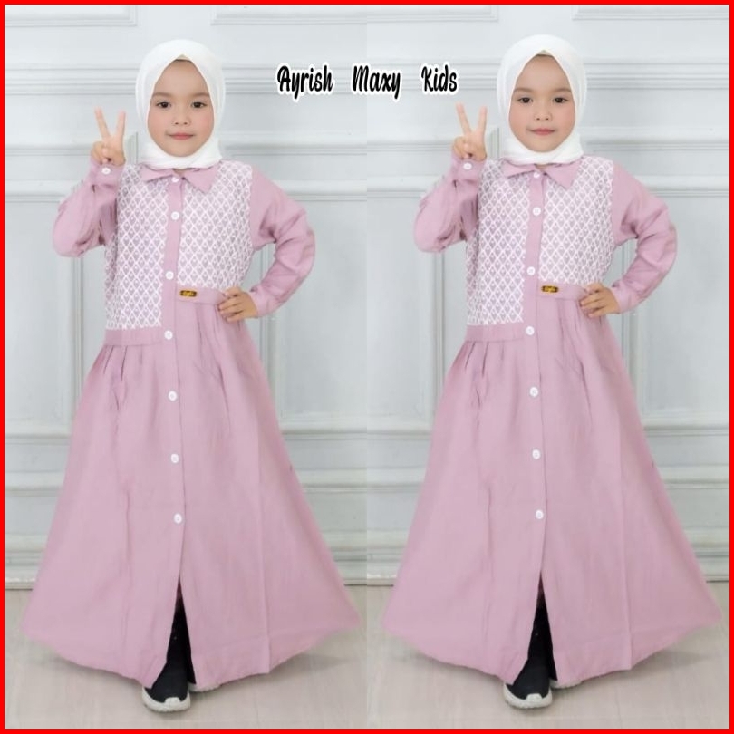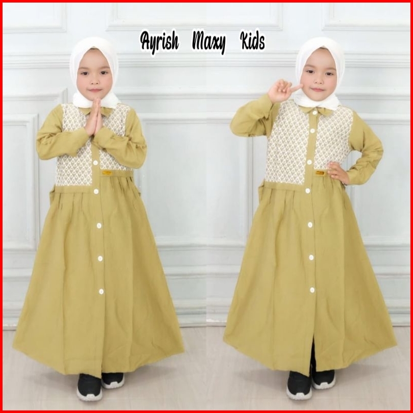 Gamis Anak Polo Linen Ayrish Maxy Kids Pakaian Anak Lebaran- Baju Muslim Anak
