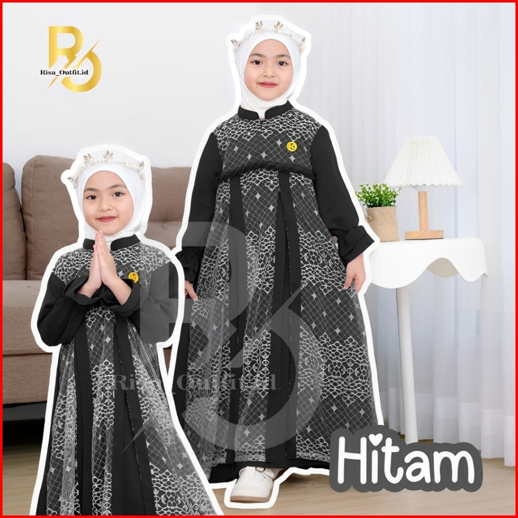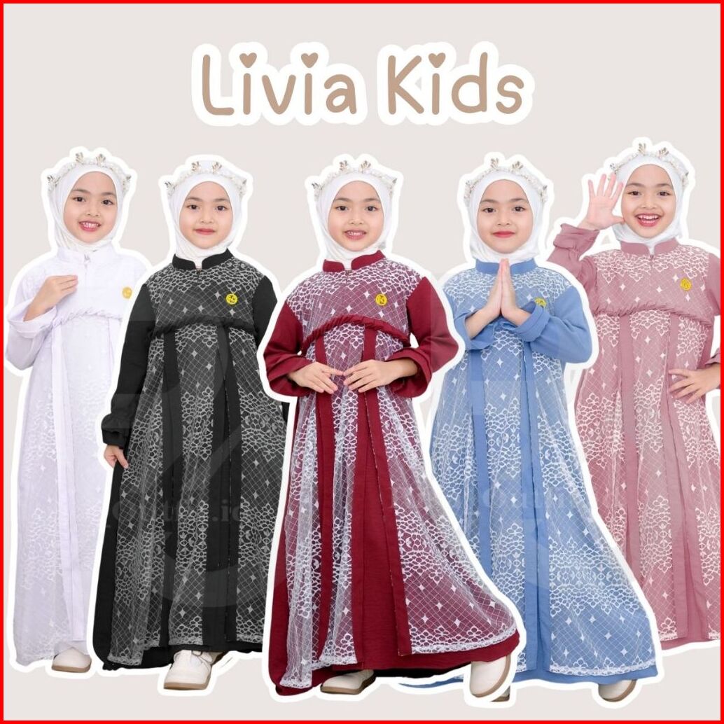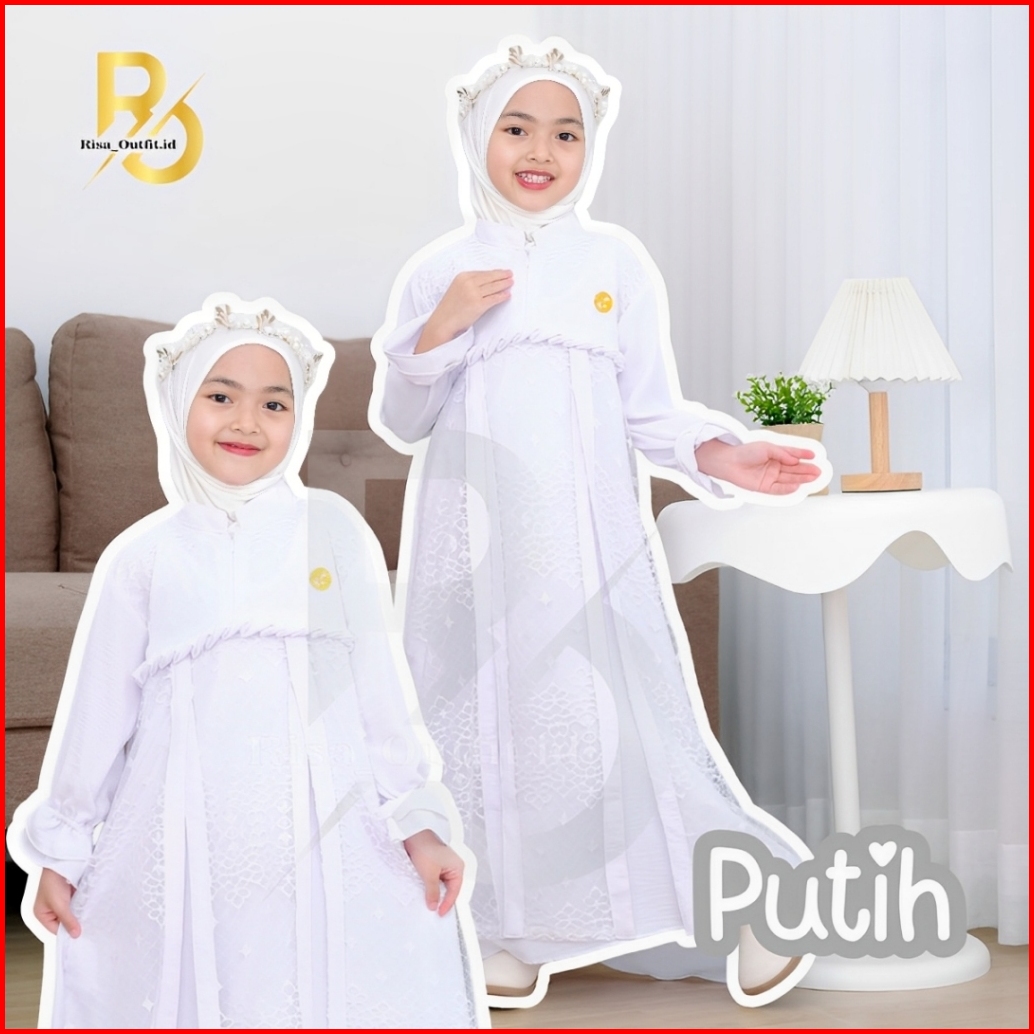 Livia Kids Gamis Anak Perempuan Crinkle Mix Tile Baju Muslim Anak 3-10 Tahun Gamis Putih Anak