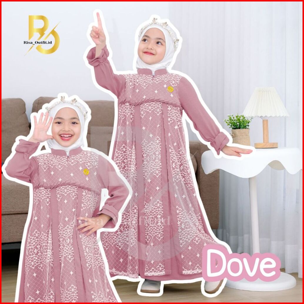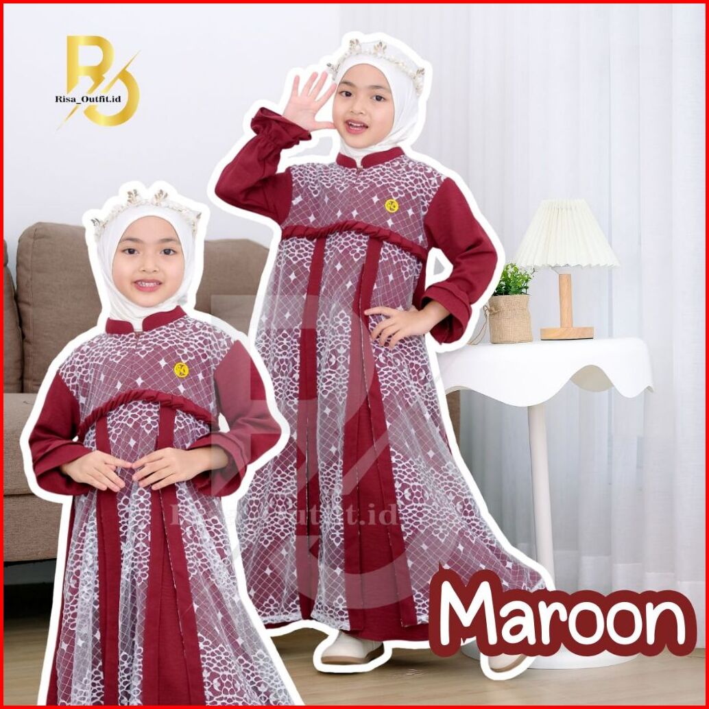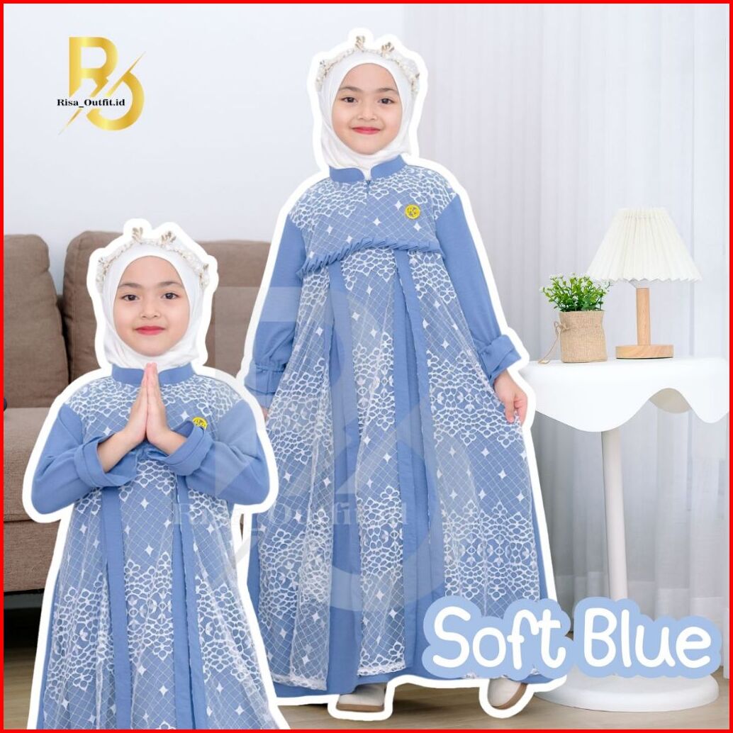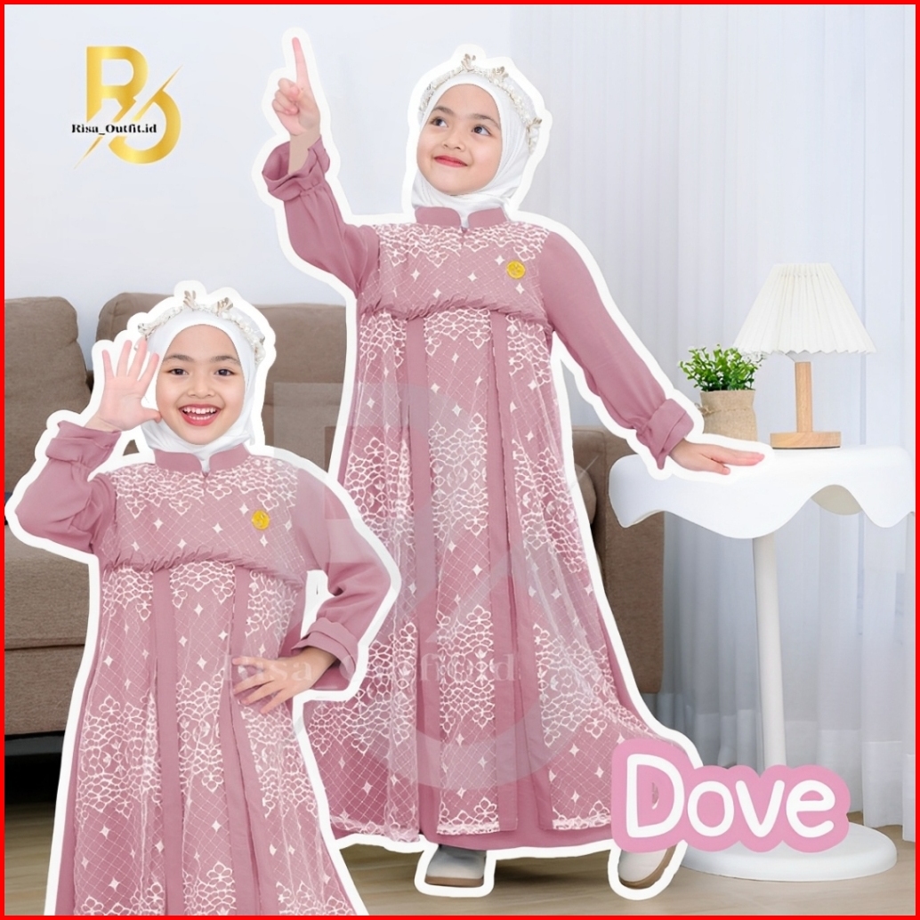 Livia Kids Gamis Anak Perempuan Crinkle Mix Tile Baju Muslim Anak 3-10 Tahun Gamis Putih Anak