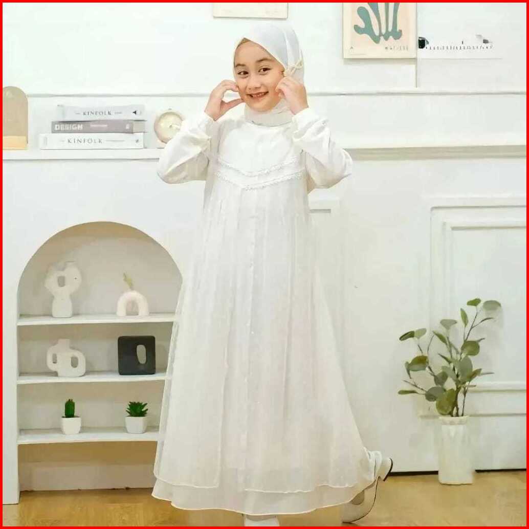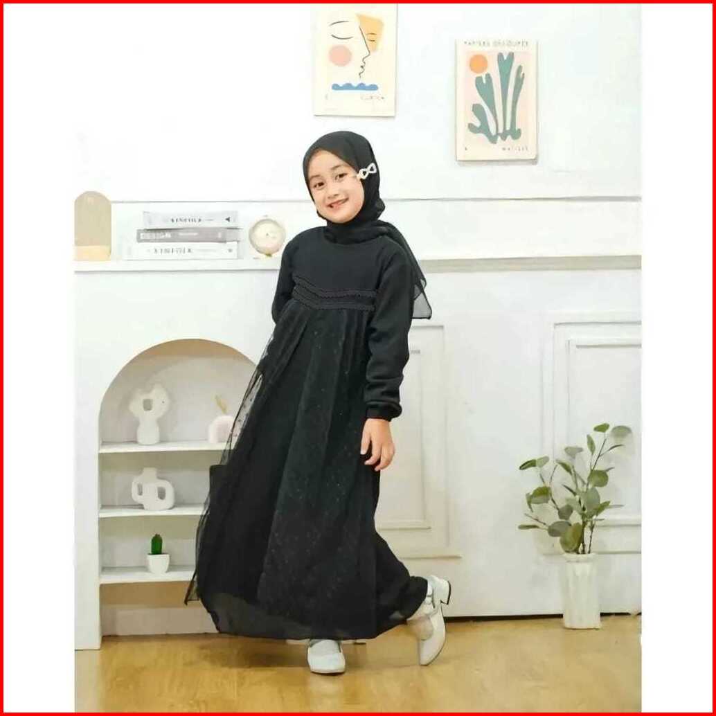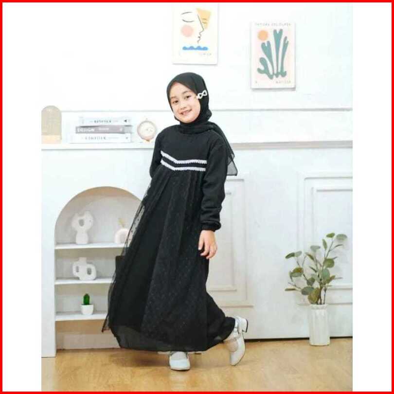 Shafa Dress Kids Free Hijap Gamis Anak Umur 2-13tahun Size S M L Xl Ceruty Babydool Mix Tile Dot Aplikasi Renda Gamis