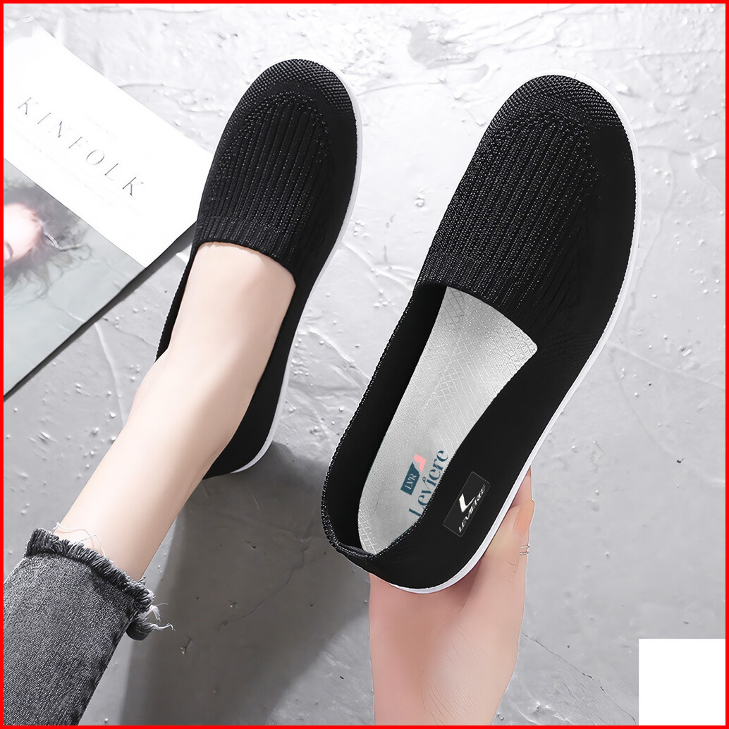 Lvrflats Eunji Free Box Sepatu Slip On Wanita Rajut Sepatu Wanita Tanpa Tali Sepatu Wanita Sport Lv0175