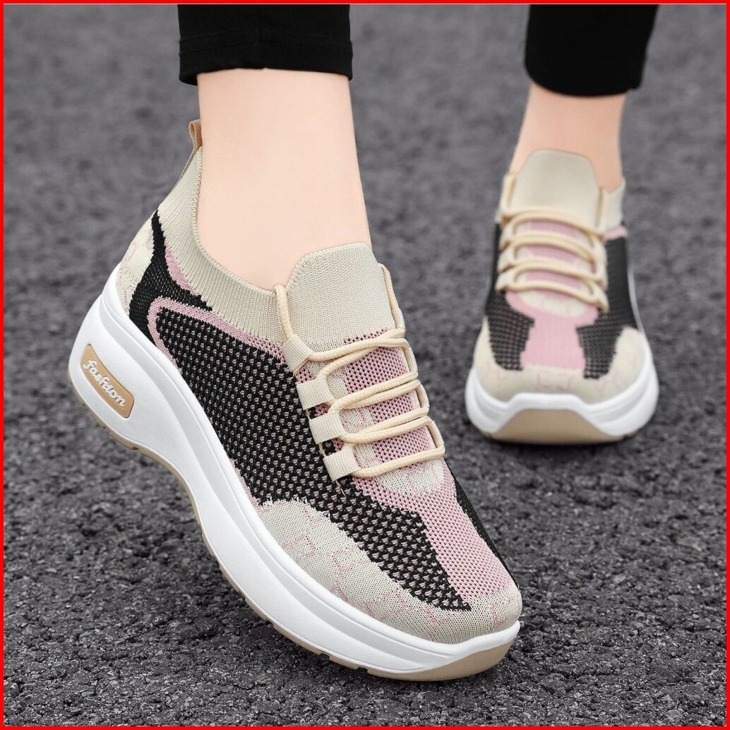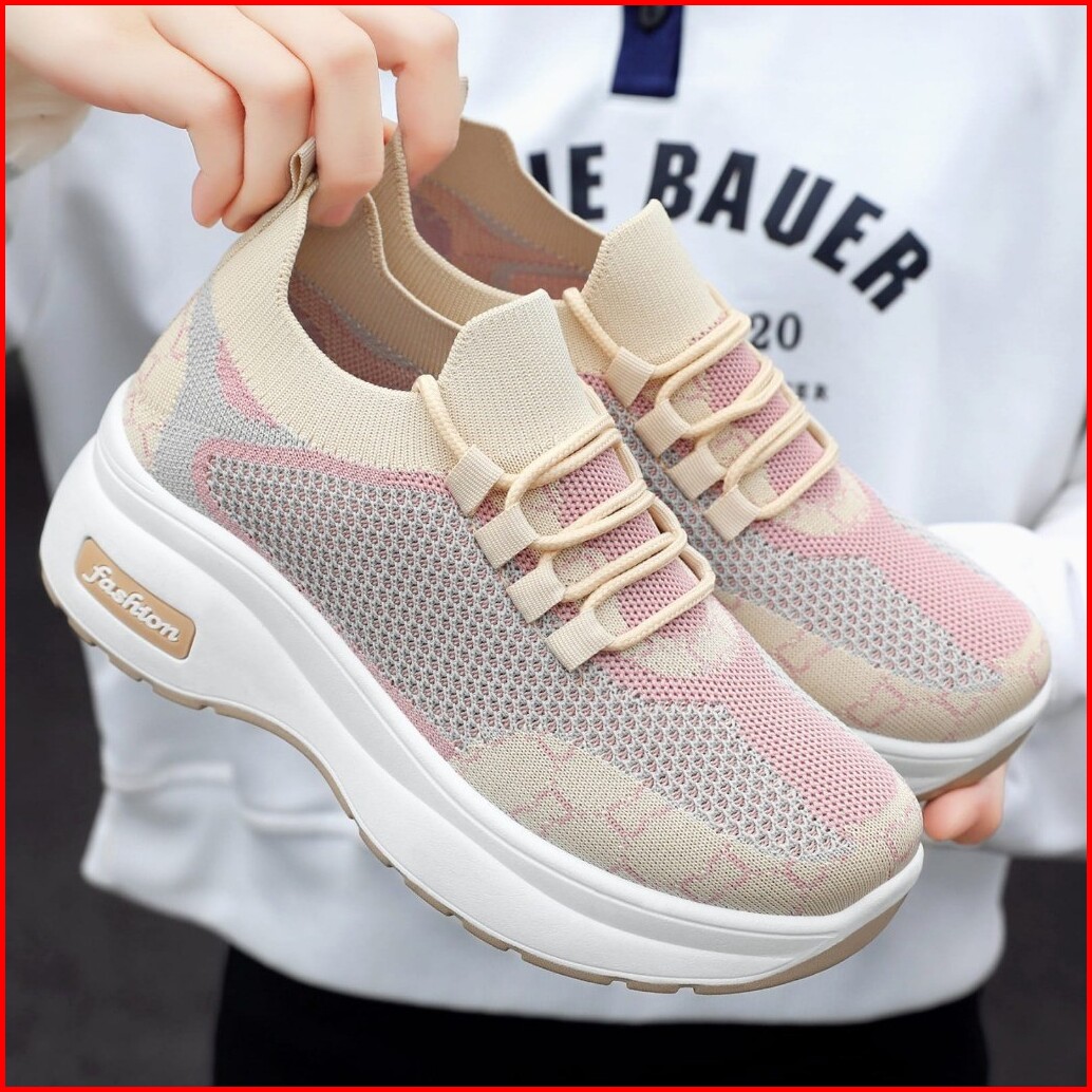 Sio Mm093 Sepatu Wanita Slip-on Flyknit Berkualitas Highsole Daily Bagus Comfy Praktis Kekinian