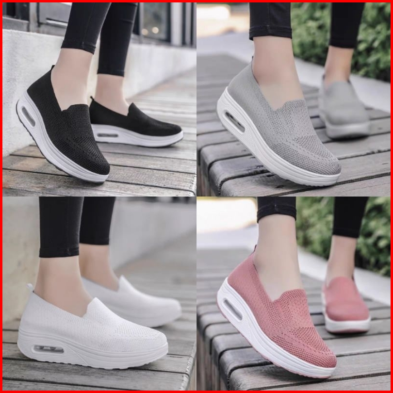 Ssis Ch090 Sepatu Sneakers Wanita Motif Jaring Polos Rajut