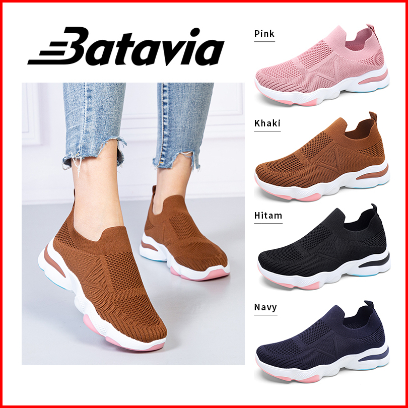 Batavia Grosir Sepatu Wanita Rajut Sepatu Tanpa Tali Hitam Sepatu Wanita Sport Women Sneakers A111