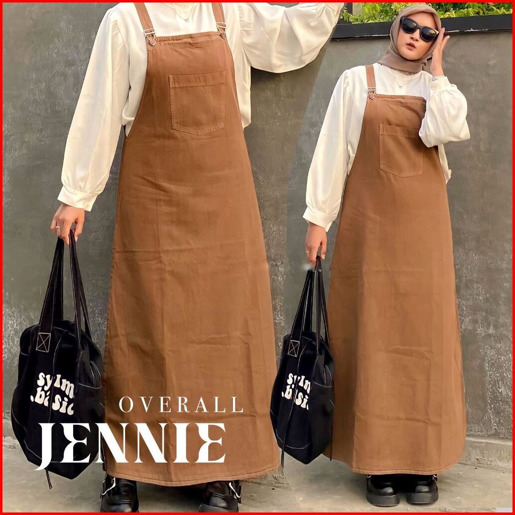 Overall Jumpsuit Jeans Wanita Pocket Polos Jennie