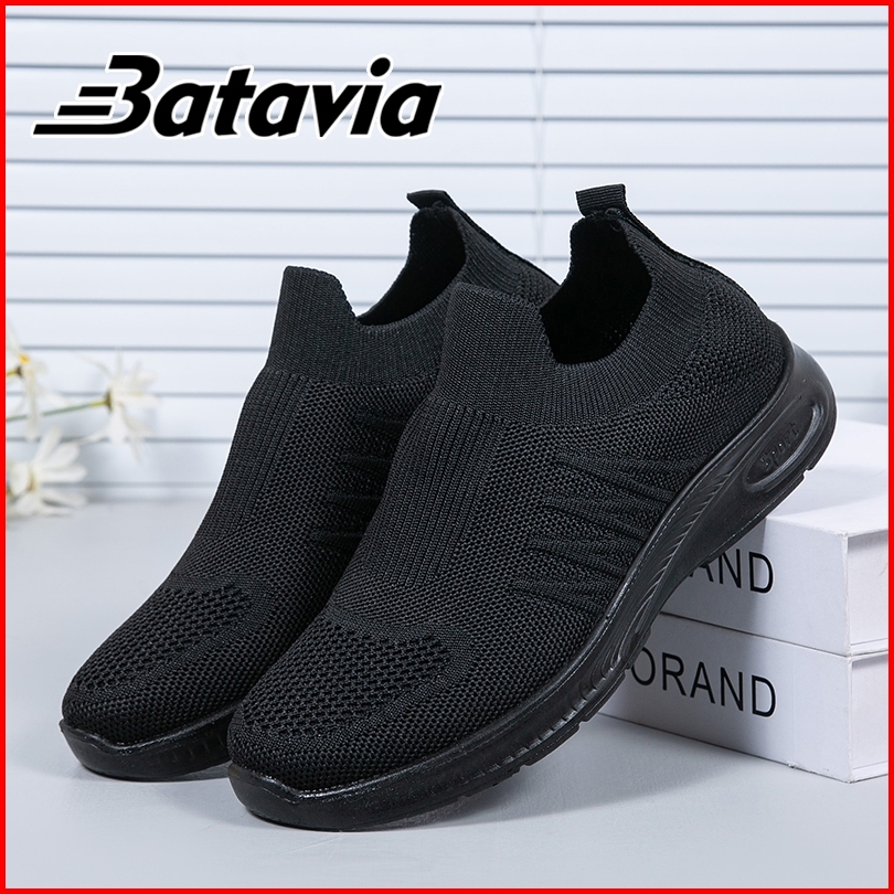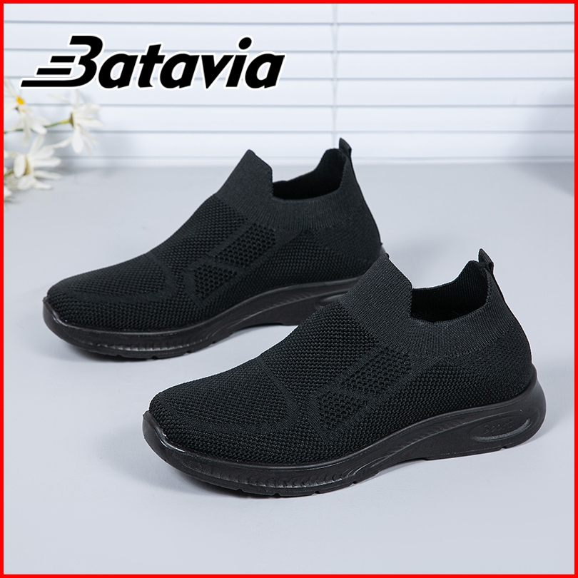 Batavia Sepatu Kets Wanita Sepatu Rajut Hitam Canggih Bernapas Sepatu Kets Hitam Sepatu Kanvas Sepatu Kets Hitam J18