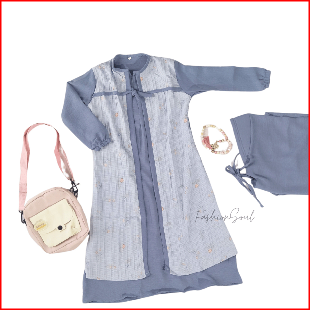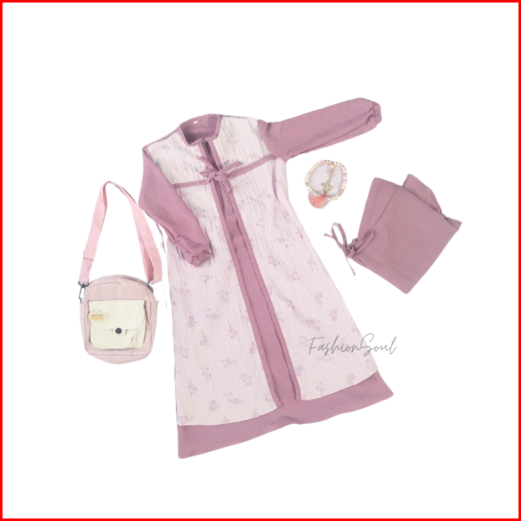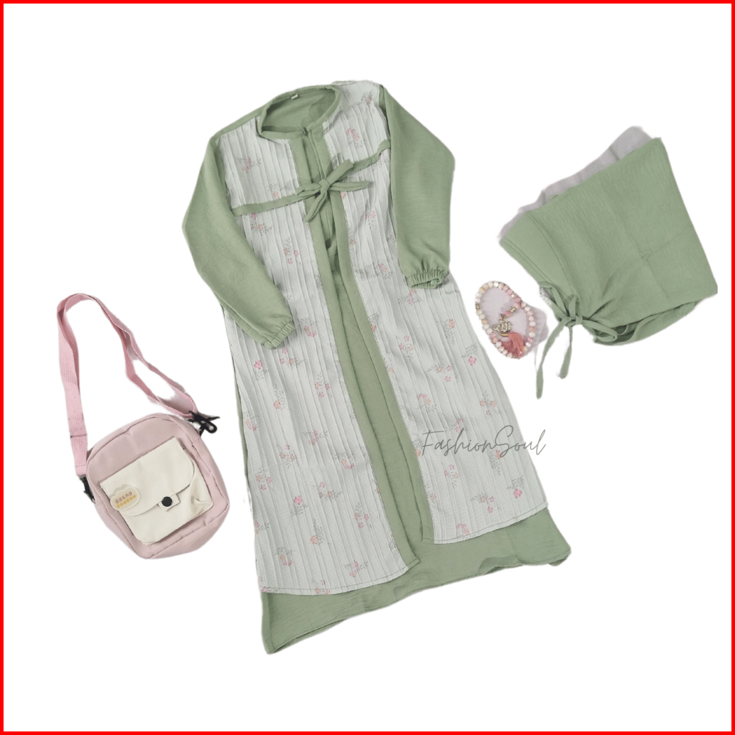 Gamis Anak Perempuan Crinkle Airflow Sabyan Usia 3 Sampai 12 Tahun Free Kerudung