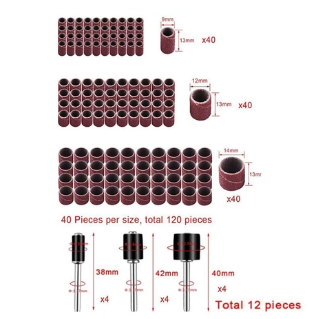 PROMO 120PCS Refill Amplas Ring + 12PCS Mandrel Amplas Drum untuk Mini Grinder Kertas Pasir Gosok Bulat Drum