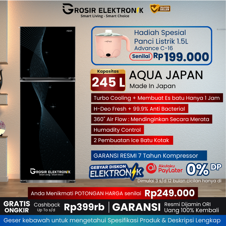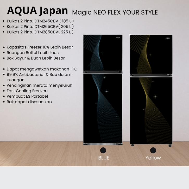 GRATIS ONGKIR - Kulkas 2 Pintu 225L H-DeoFresh Jumbo [ AQUA JAPAN AQR-5CBV 205L-225L ] - kulkas aqua 2 pintu - K2P STGE