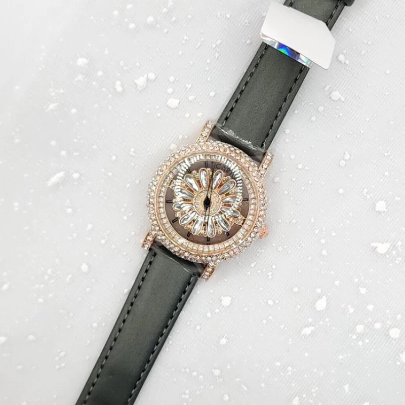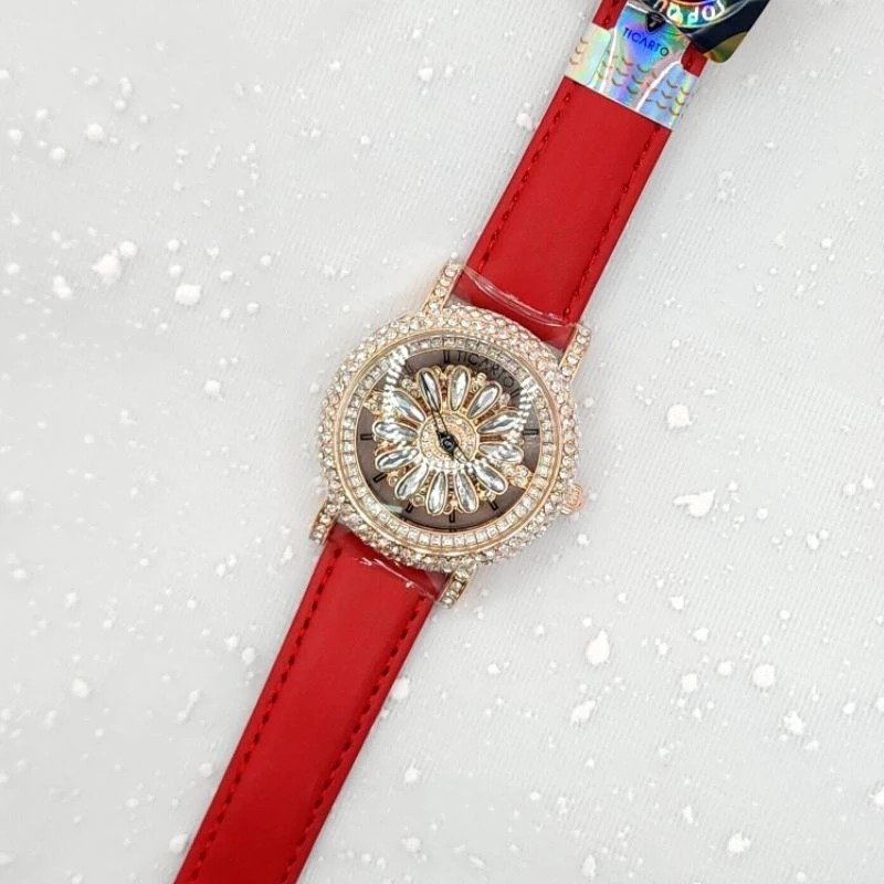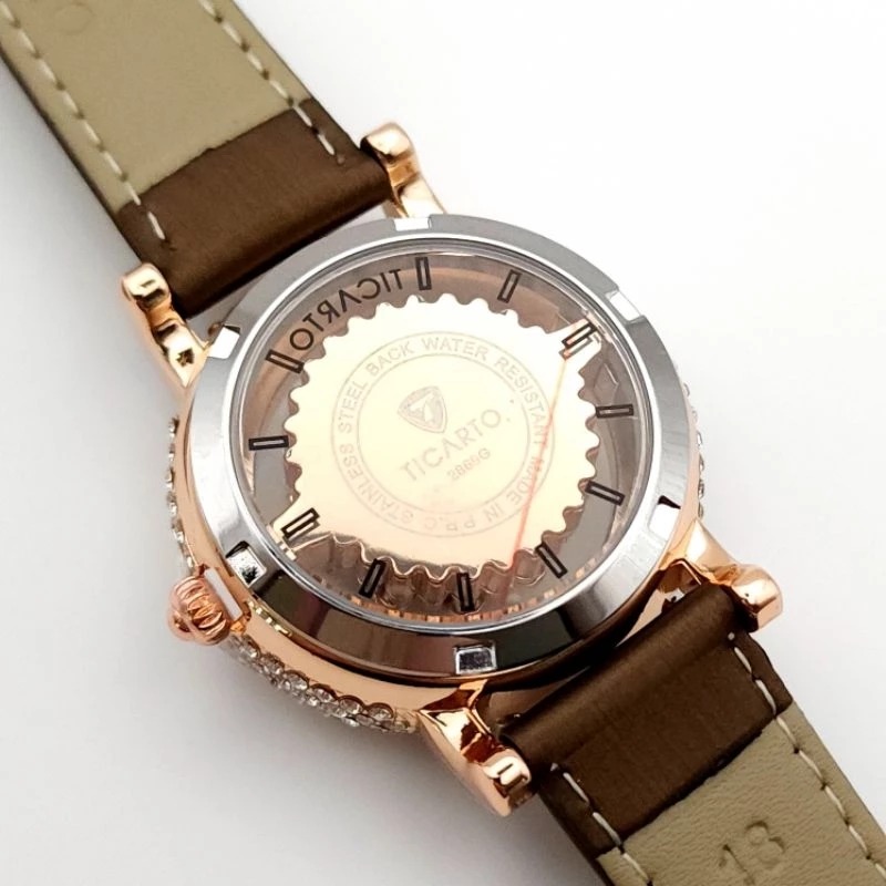 Terbaru Jam Tangan Wanita Original Fashion Ticarto 2869 Analog Kulit Jam Mutar Transparan Free Box
