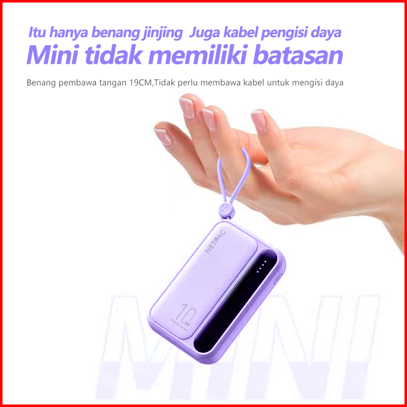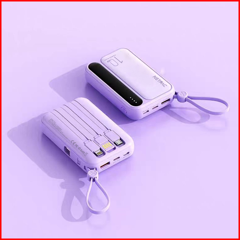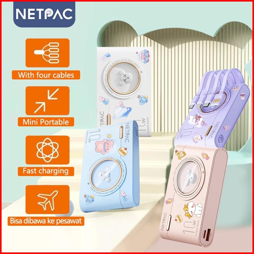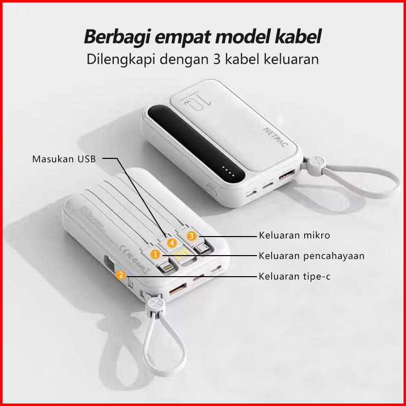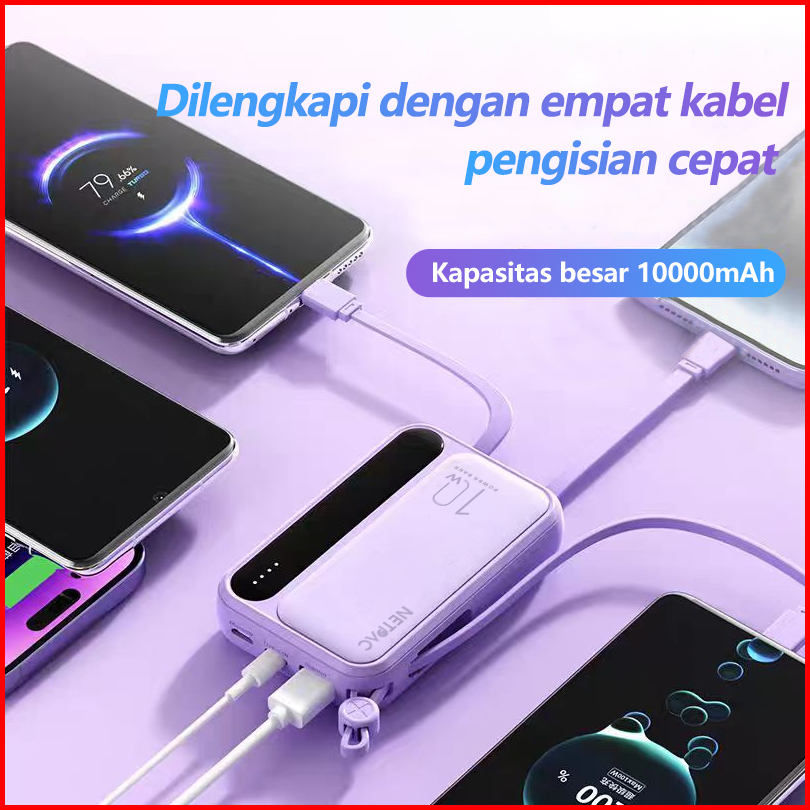 Netpac Powerbank 10000mah Fast Charging Murah Mini Lightweight Lcd With 4 Kable Data