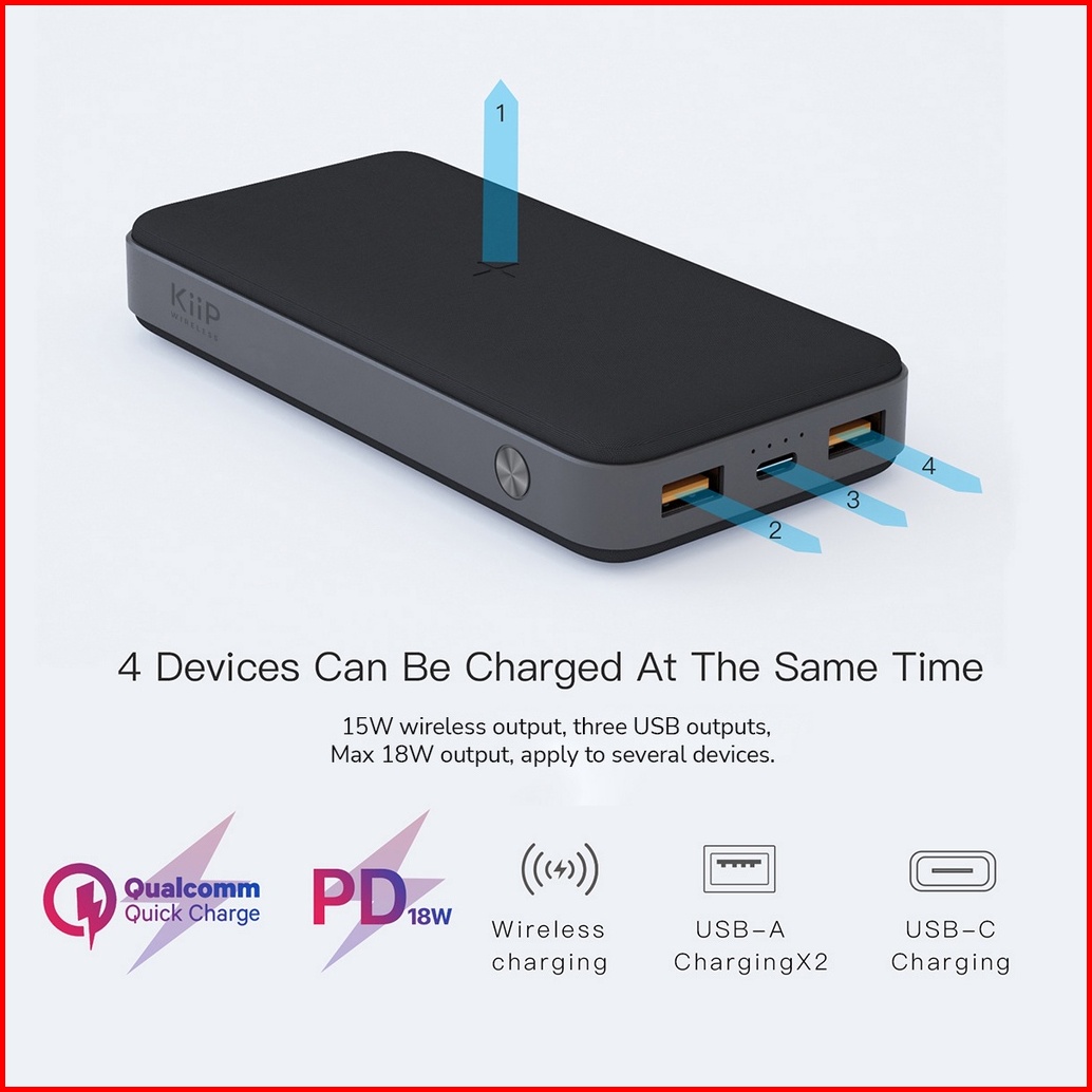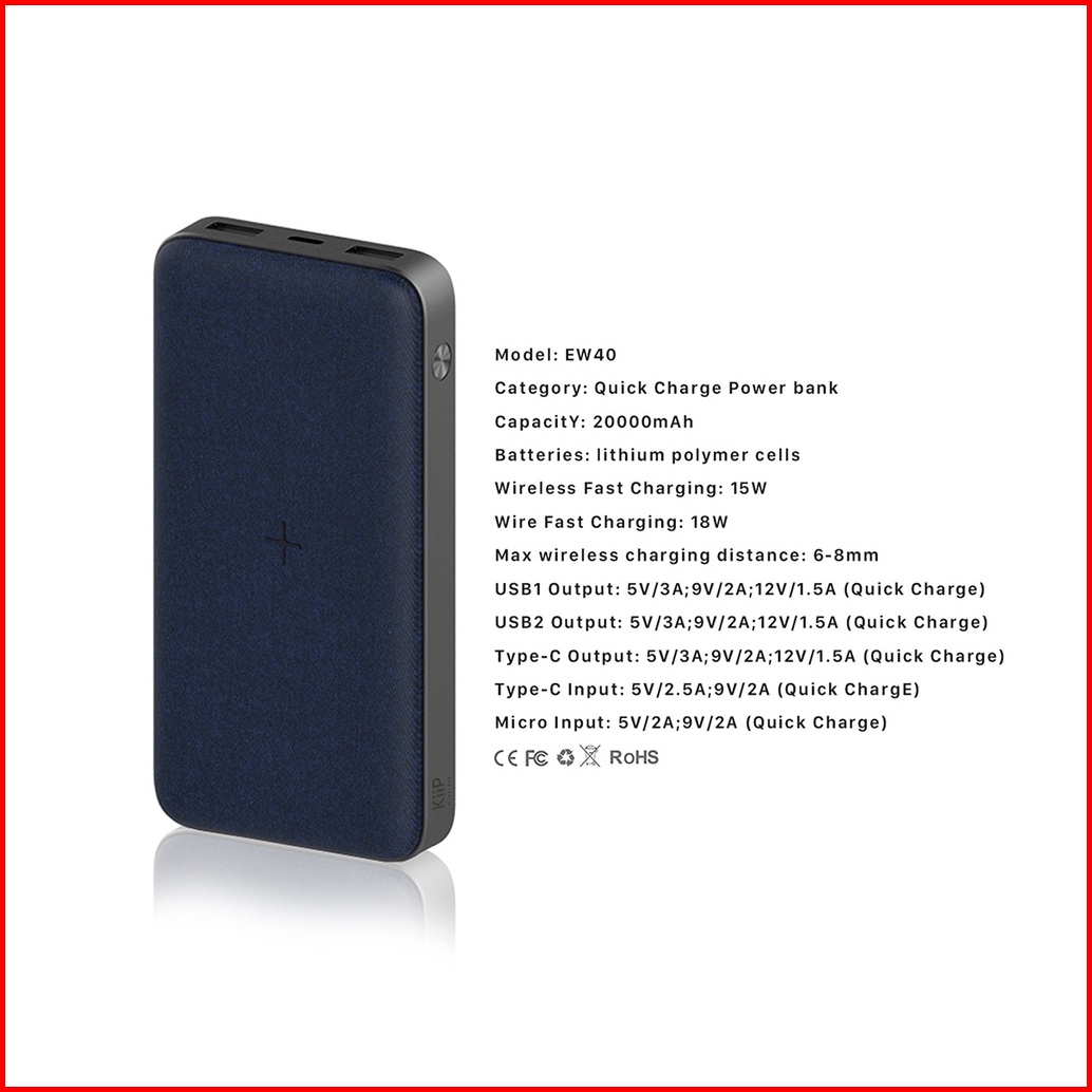 Kiip Wireless Ew40 Power Bank 15w Fast Charging Pd Qc 3.0 20w 20000mah