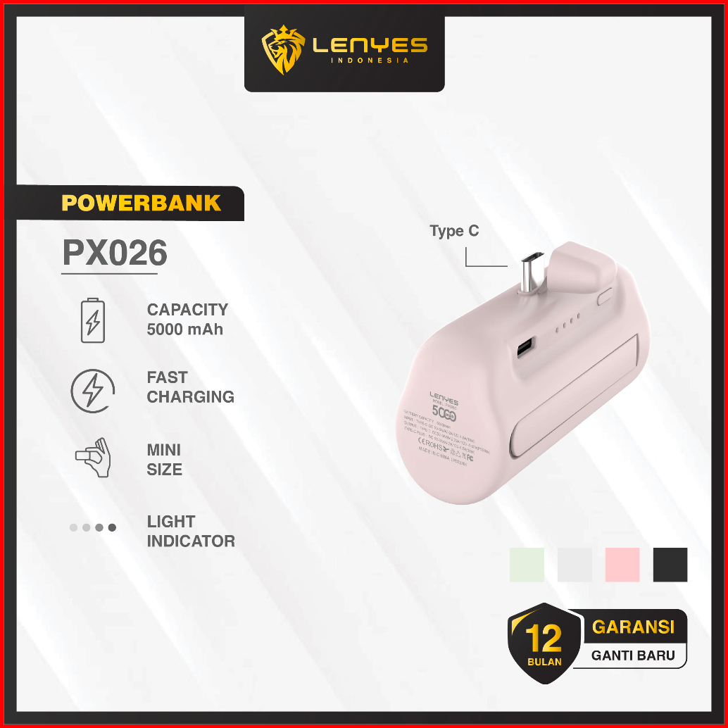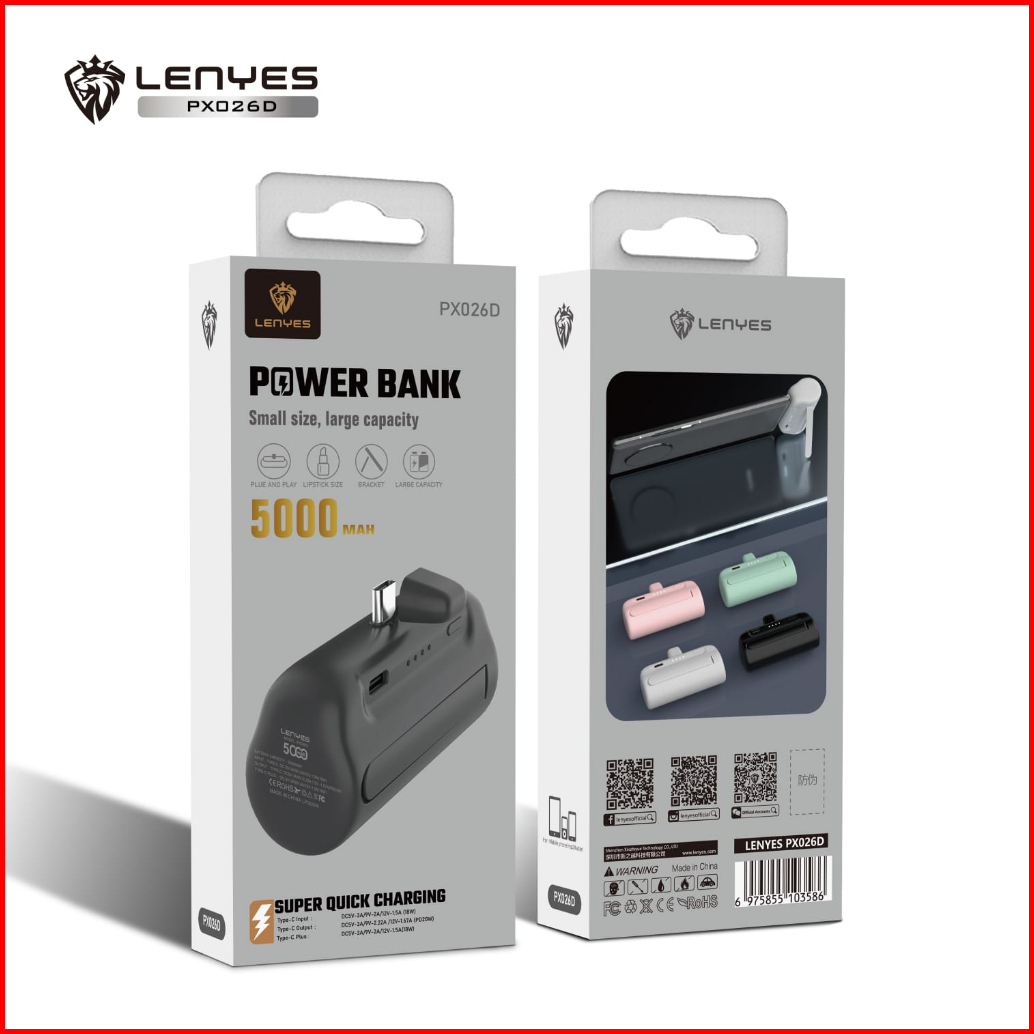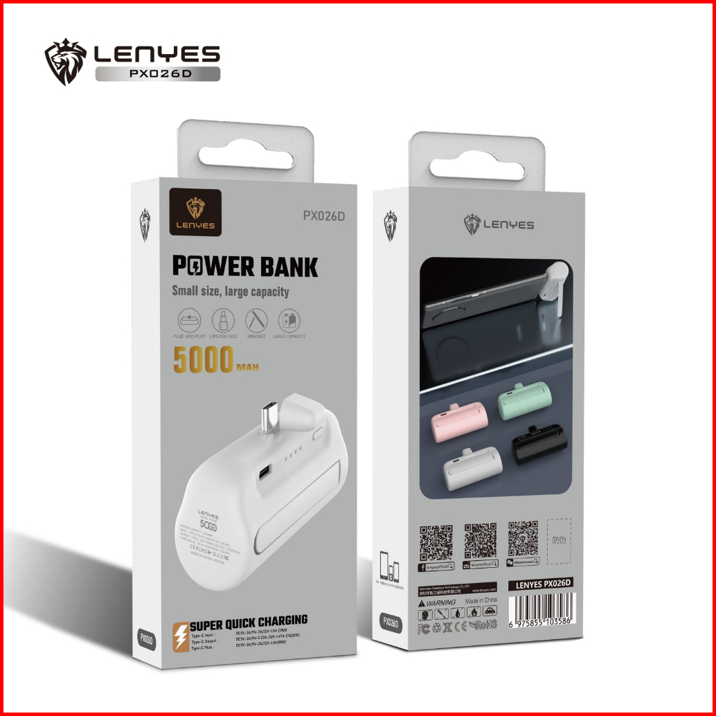 Lenyes Px026d 5000mah Mini Powerbank Fast Charging Connector Type C Portable Power Bank