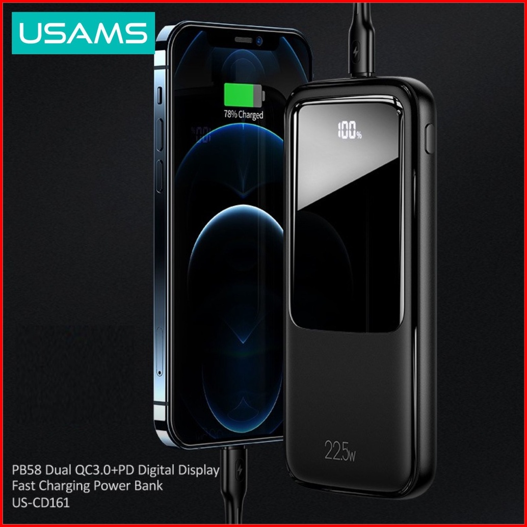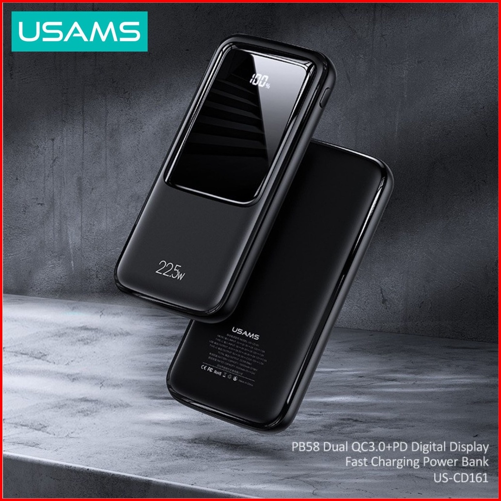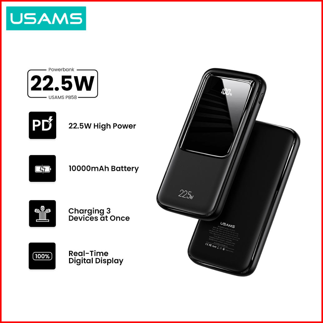 Usams Pb58 Powerbank Fast Charging 22.5w 10000mah Dual Qc3.0 Pd Broad Led Display