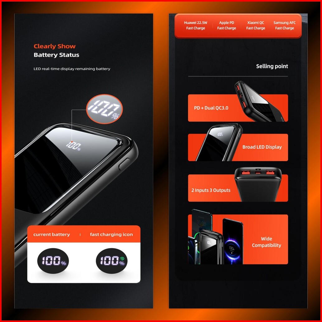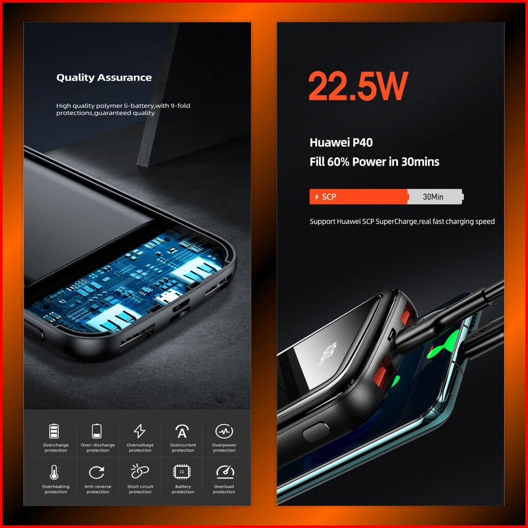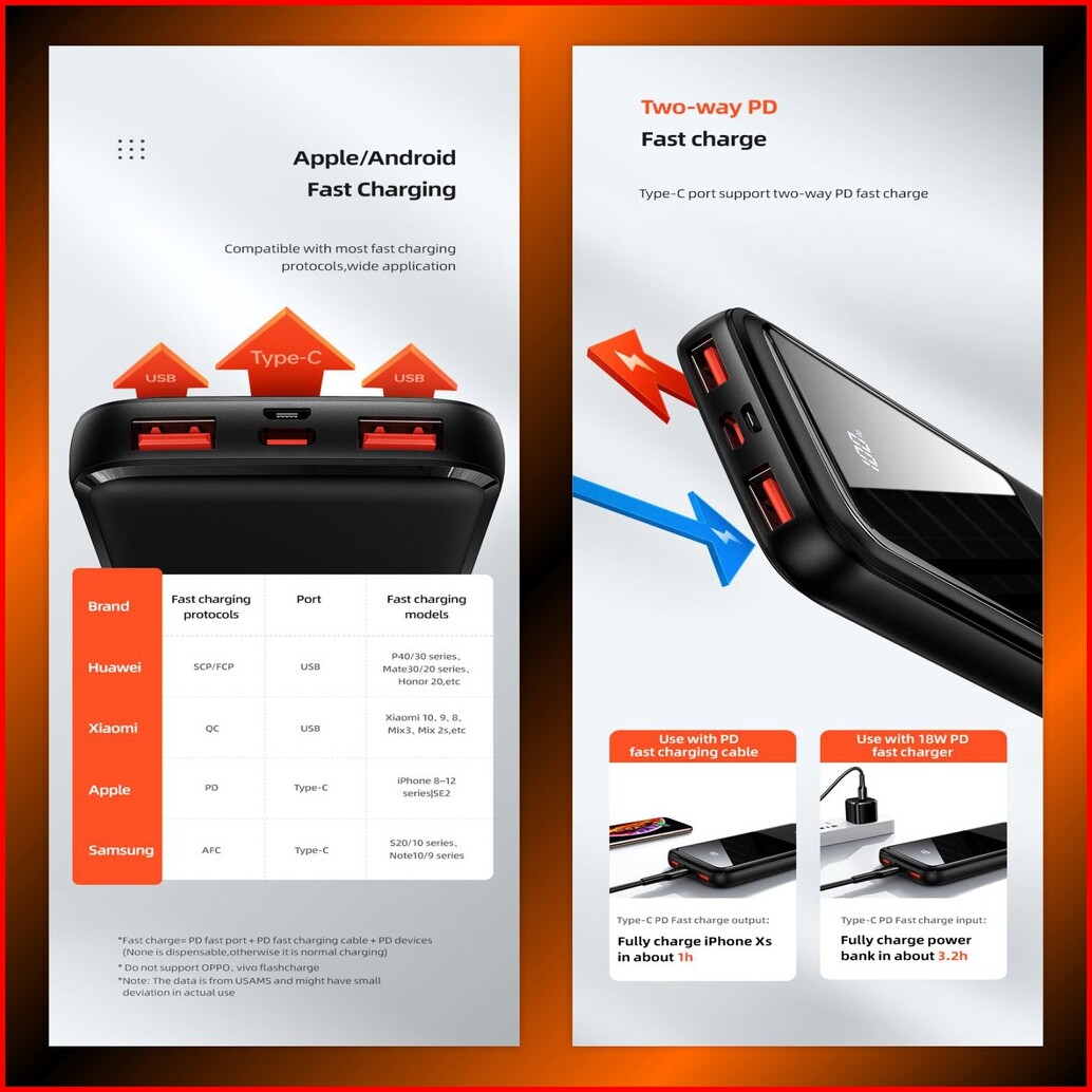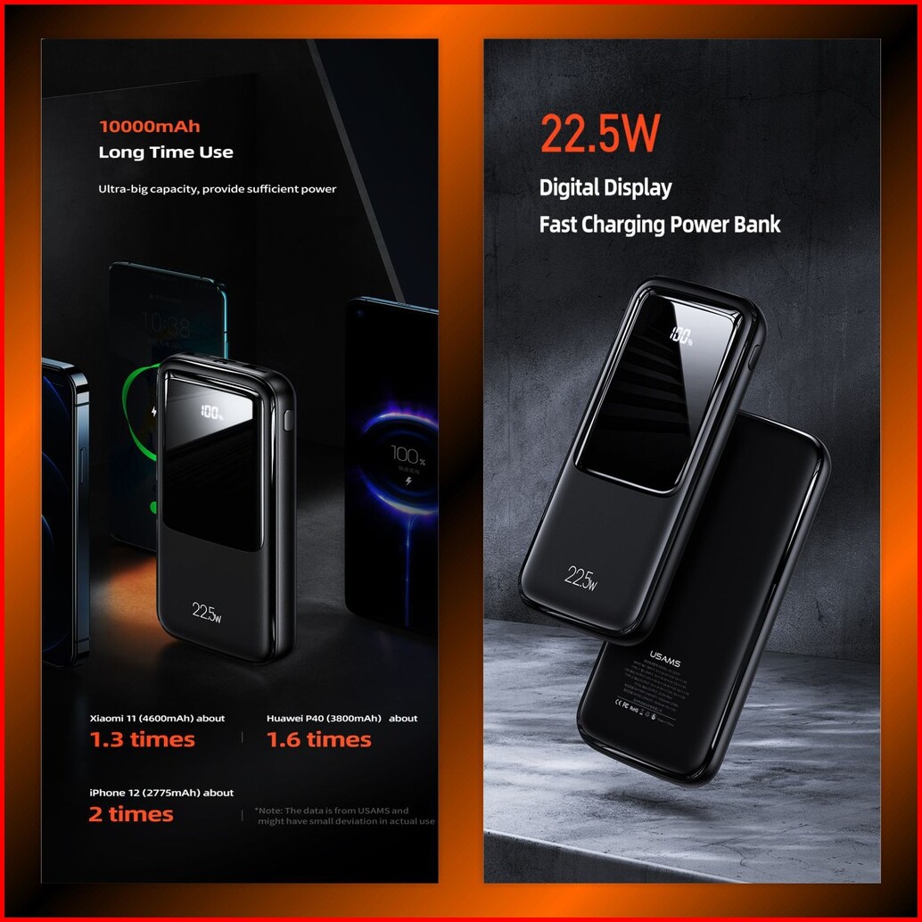 Usams Pb58 Powerbank Fast Charging 22.5w 10000mah Dual Qc3.0 Pd Broad Led Display