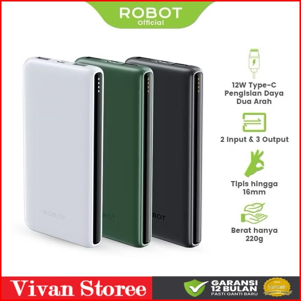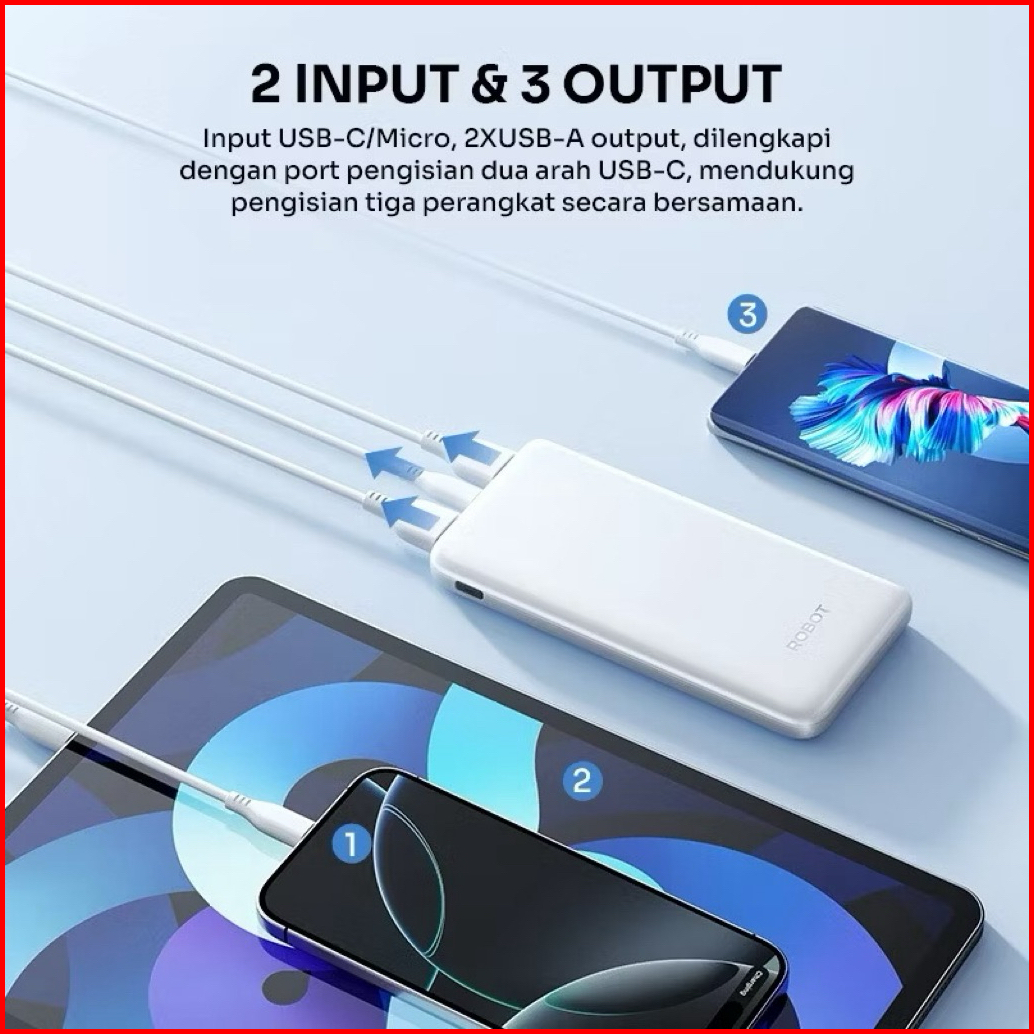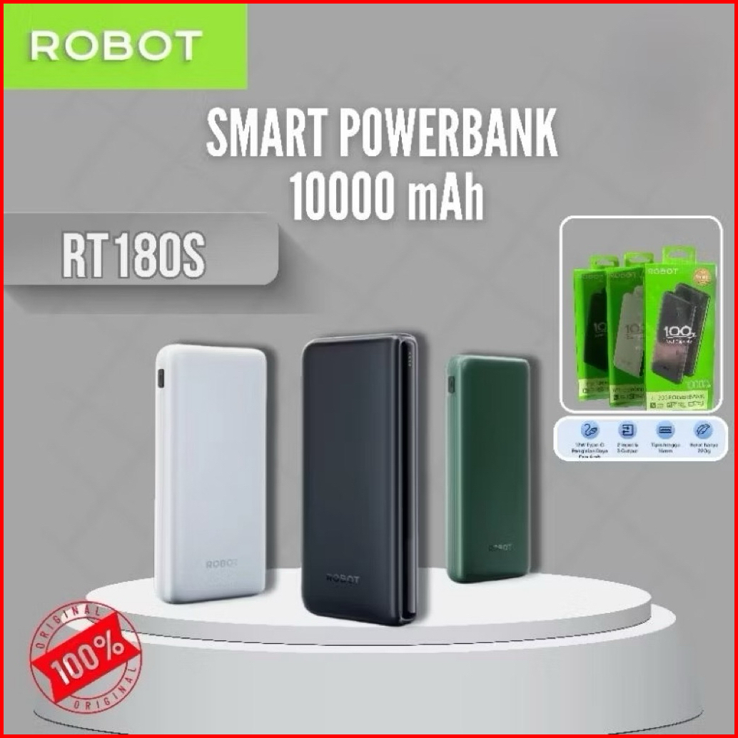 Robot Powerbank Rt180s Power Bank 10000mah 3 Output 2 Input Type C Input Output 12w Original Resmi