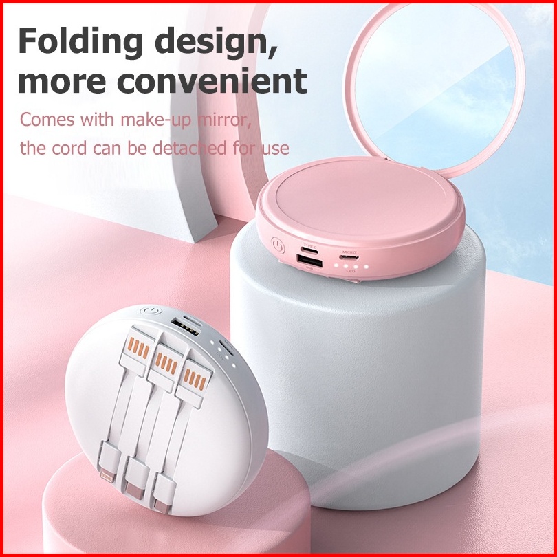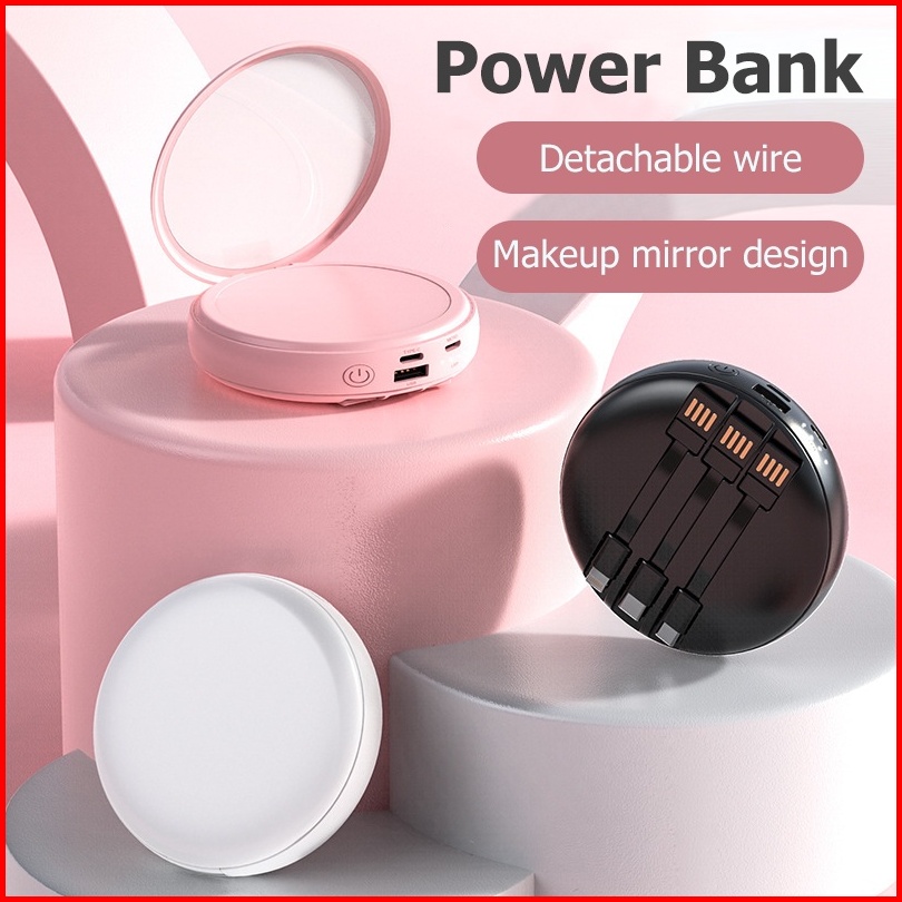 Mirror Powerbank Mini 10000mah With Makeup Mirror Fast Charging Power Bank For Iphone Type-c Micro Usb Battery Usb 50000