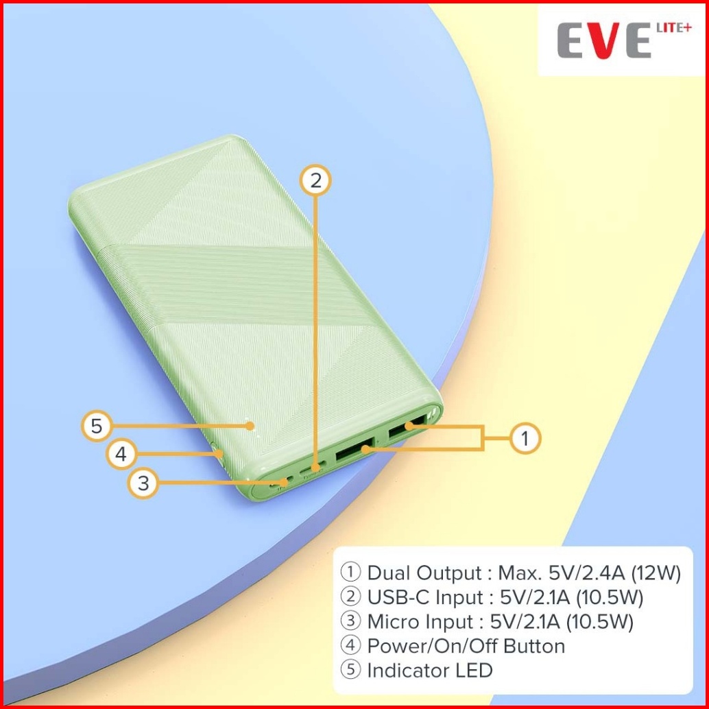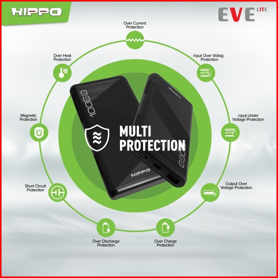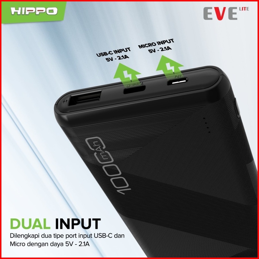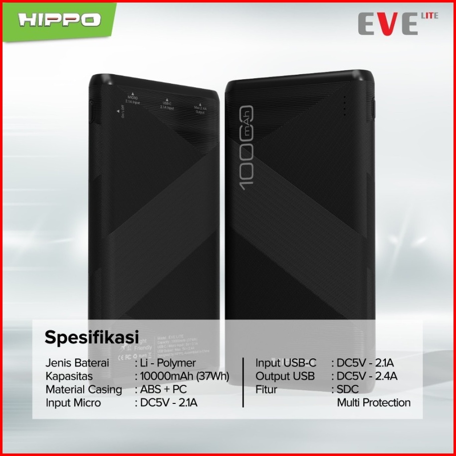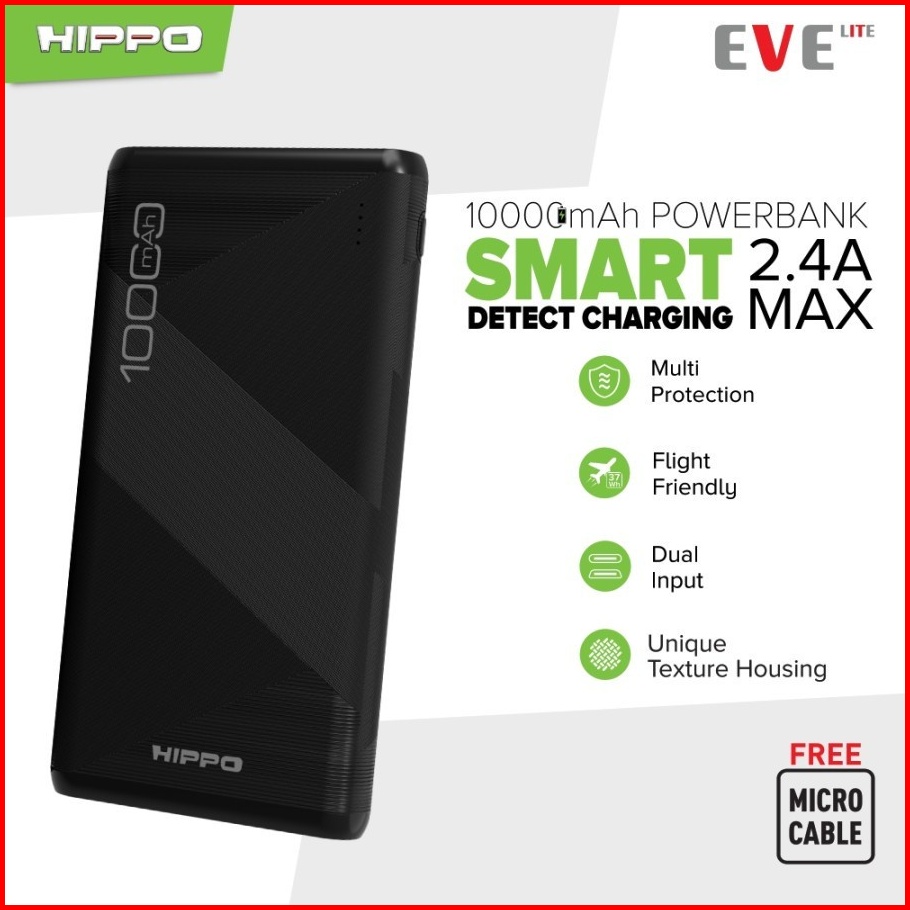 Hippo Powerbank Eve Lite 10000mah Smart Detect Charging Power Bank Sdc 2 Usb Ports Type C Iphone Micro Output Usb A Usb