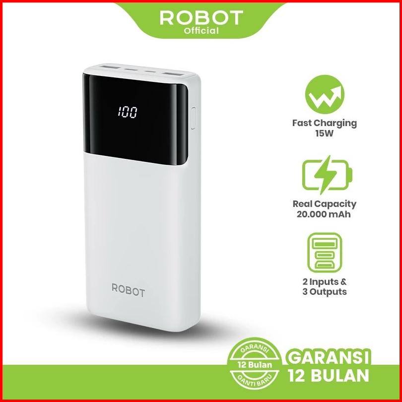 Robot Smart Powerbank Fast Charging 20000mah Rt22s 15w 3 Port Output Led Original - Garansi 1 Tahun