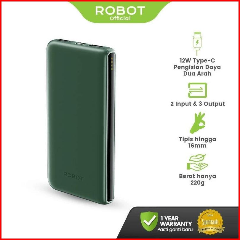 Robot Rt12 Rt-12 Powerbank 10000 Mah Dual Input Output Slim Original