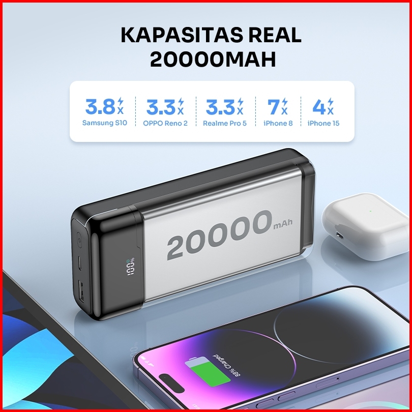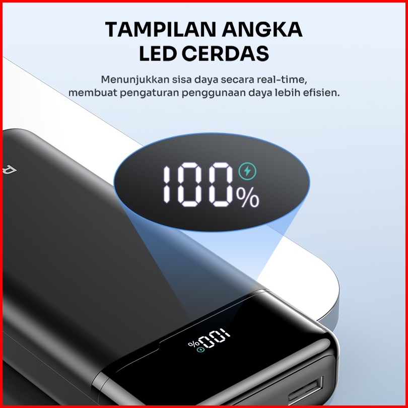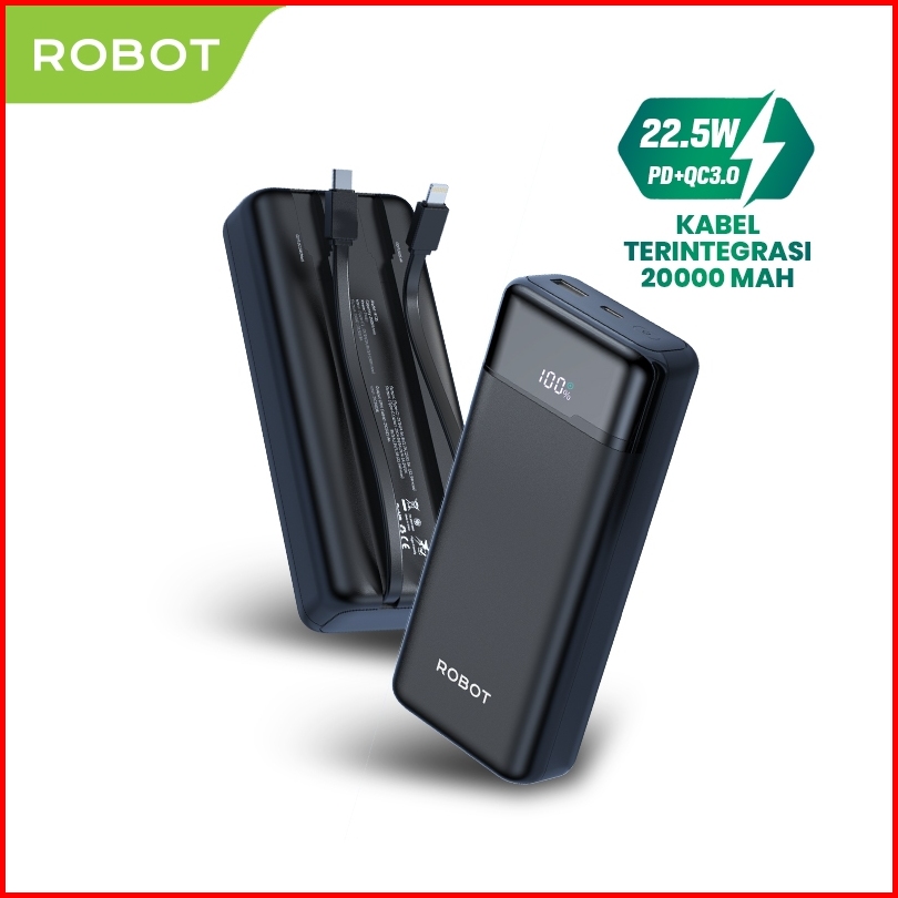 Robot Powerbank Fast Charging 20000mah 22.5w 2 Built In Cable Type C Lightning Led Display Power Bank Rt25 Original - Ga