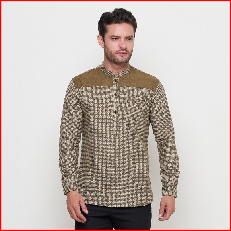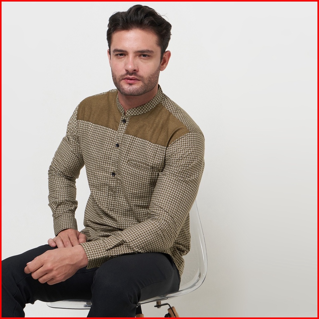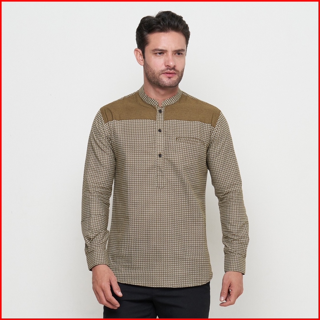 Kemeja Koko Pria Elrumi Lengan Panjang Motif Harith Warna Cokelat