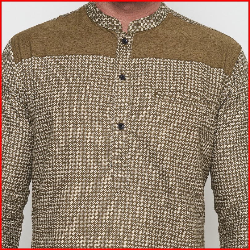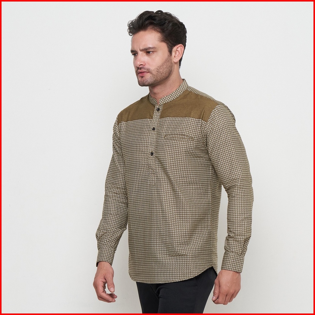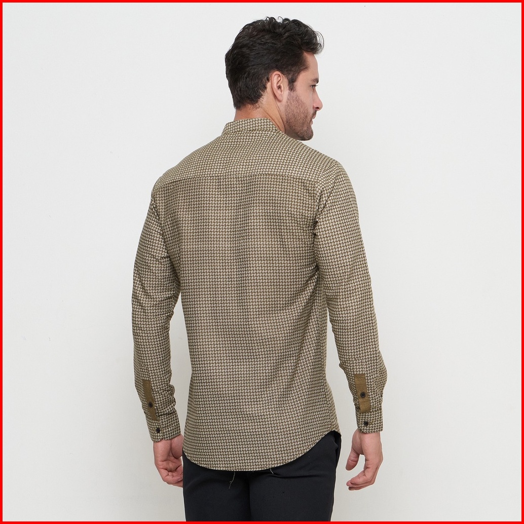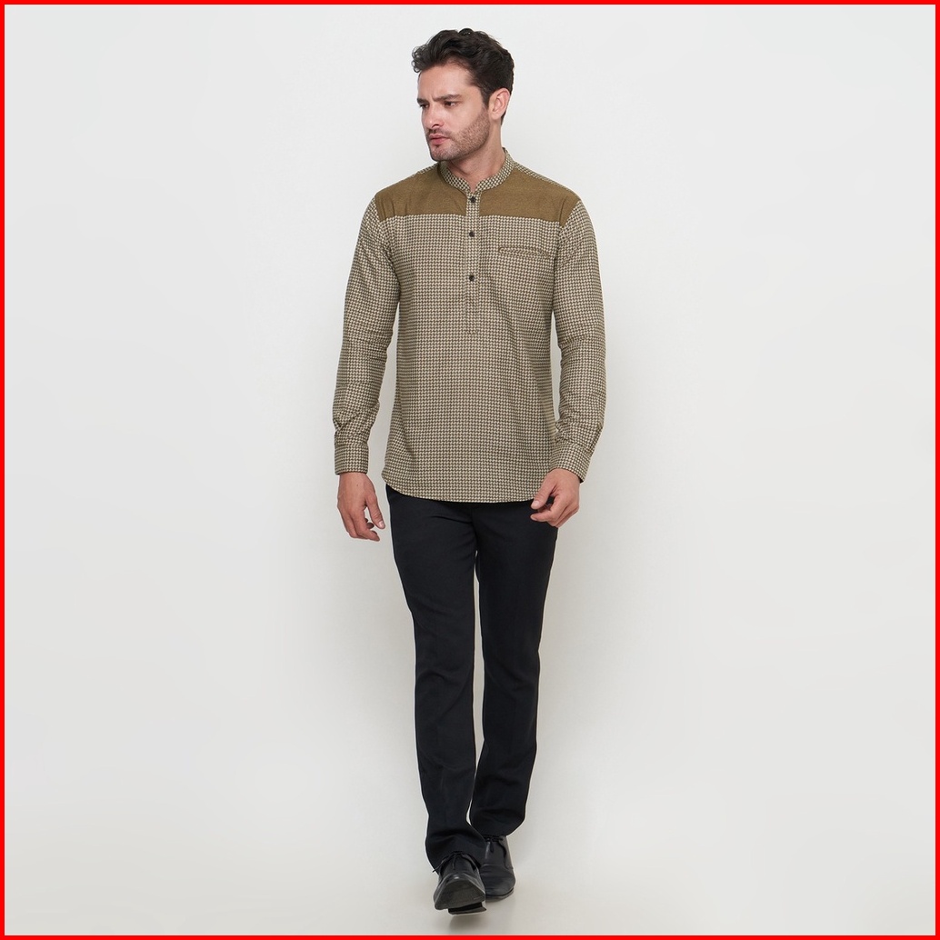 Kemeja Koko Pria Elrumi Lengan Panjang Motif Harith Warna Cokelat