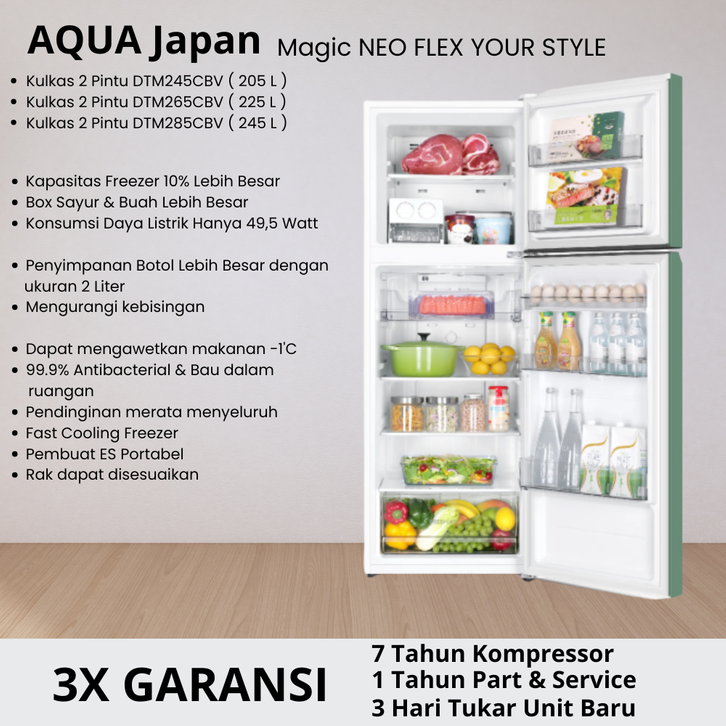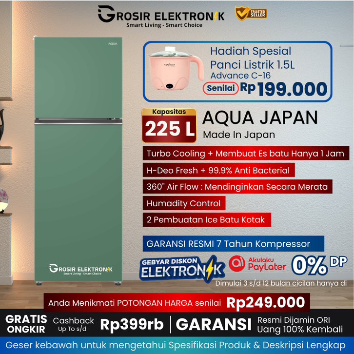 GRATIS ONGKIR - Kulkas 2 Pintu 225L H-DeoFresh [ AQUA JAPAN AQR-5CBP 205L-225L ] - kulkas aqua 2 pintu - K2P