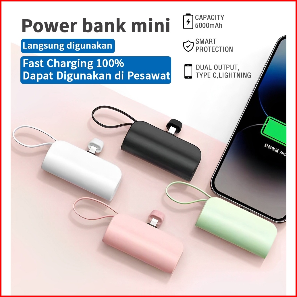 Skcbo Portable 5000mah Mini Powerbank 2 Conector Type-c Ios For Iphone Android Power Bank