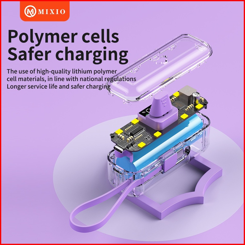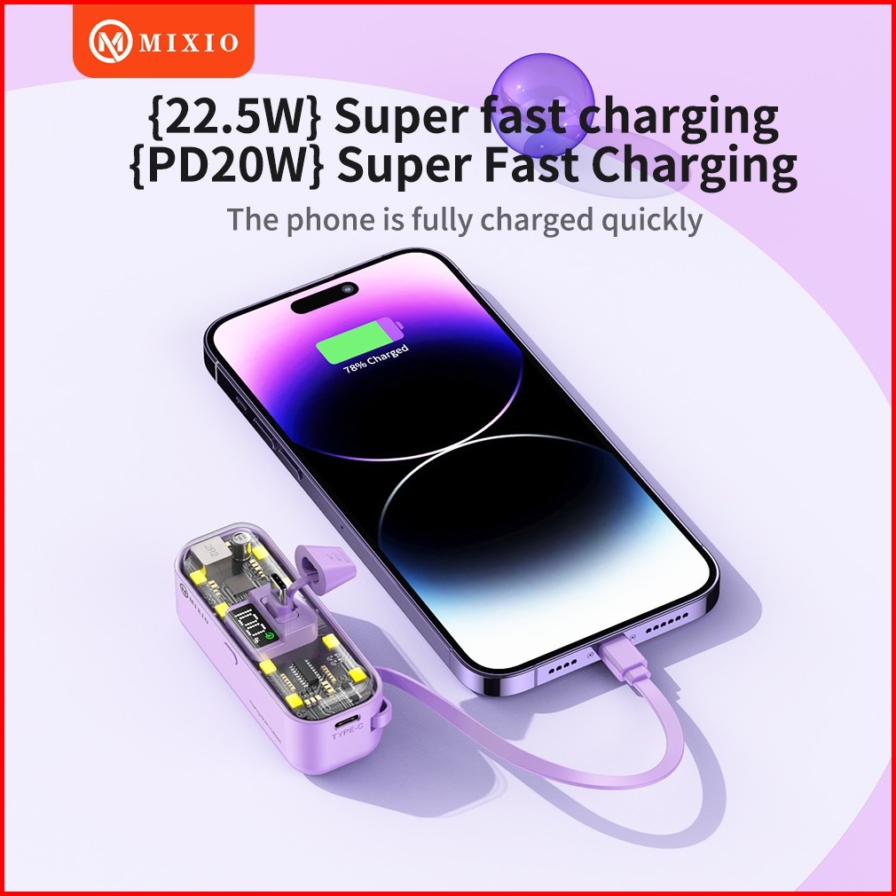 Mixio Mp-04 Powerbank 5000mah Portable Mini Transparan Lightning Ios Type C Pd Fast Charging With Led