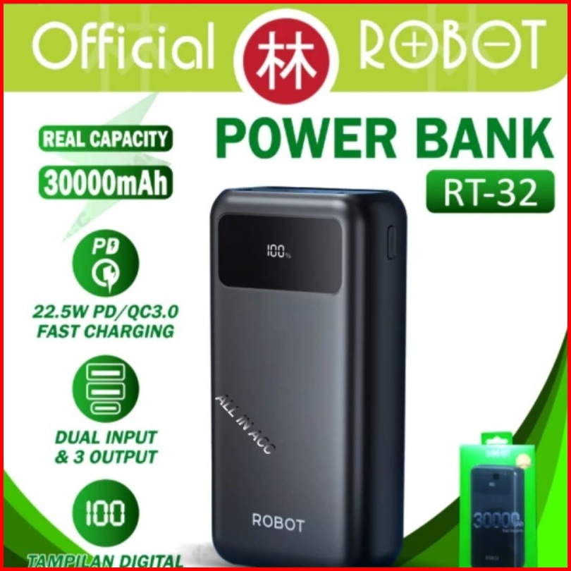 Robot Power Bank Rt180 Rt12 10000mah Rt22 20000mah Rt32 30000mah Rt40 40000mah Dual Input Port Type C Micro Usb Garansi