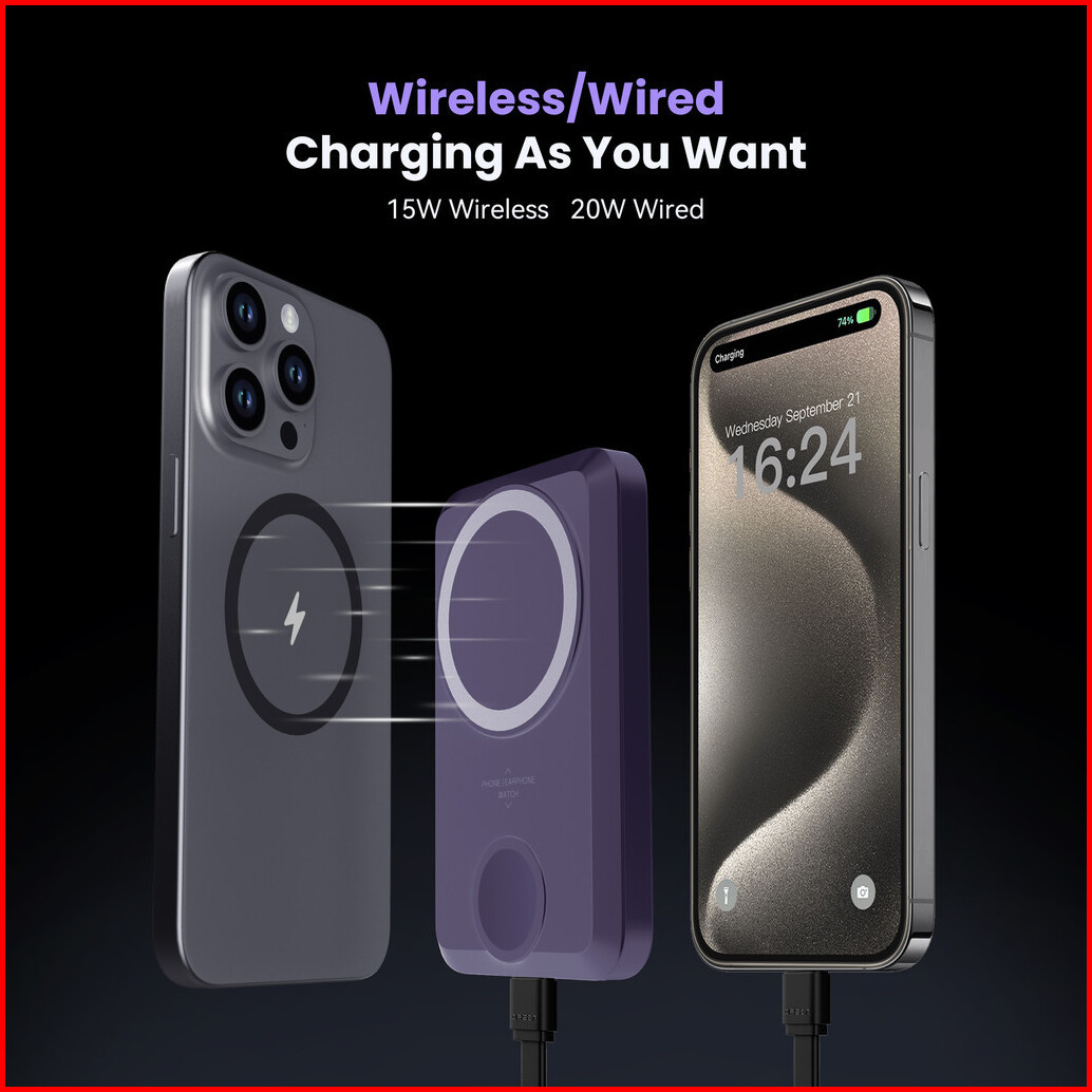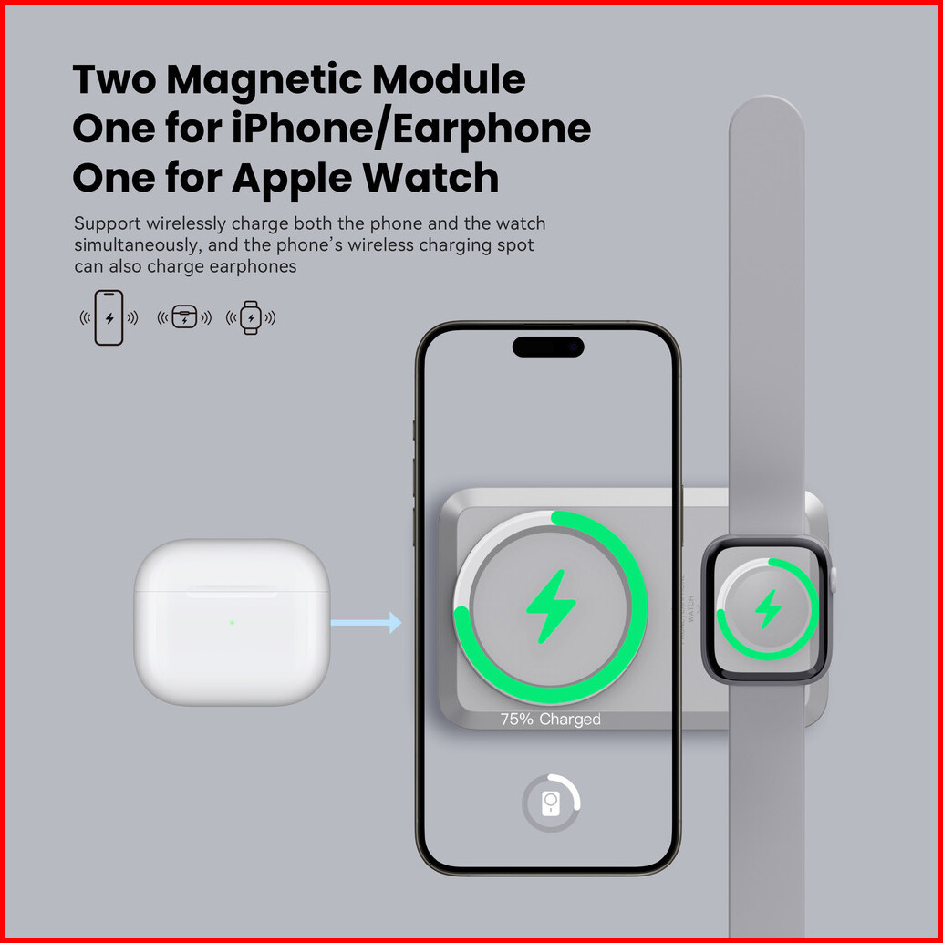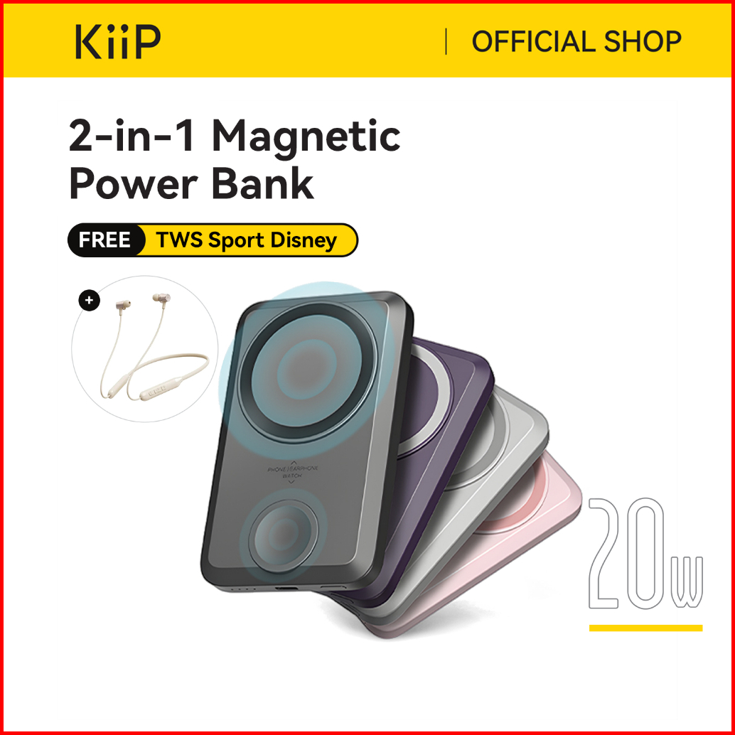 Kiip Wireless Ew31 2in1 Power Bank Wireless Magnetic Powerbank Iwatch 10000 Mah Type C Pd Fast Charging