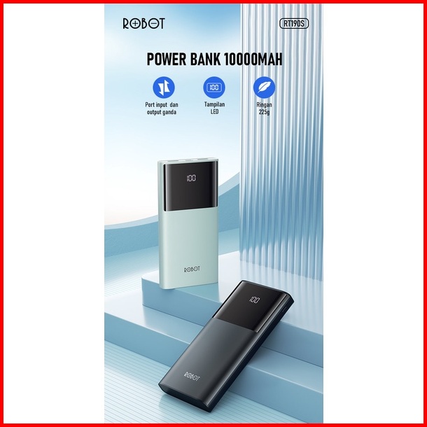 Robot Rt190s Powerbank 10.000 Mah 2.4a Dual Input Port Type C Micro Usb Dual Output Led