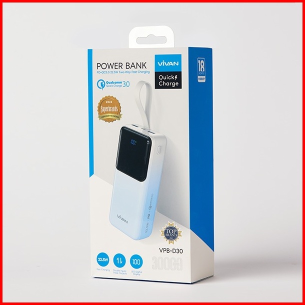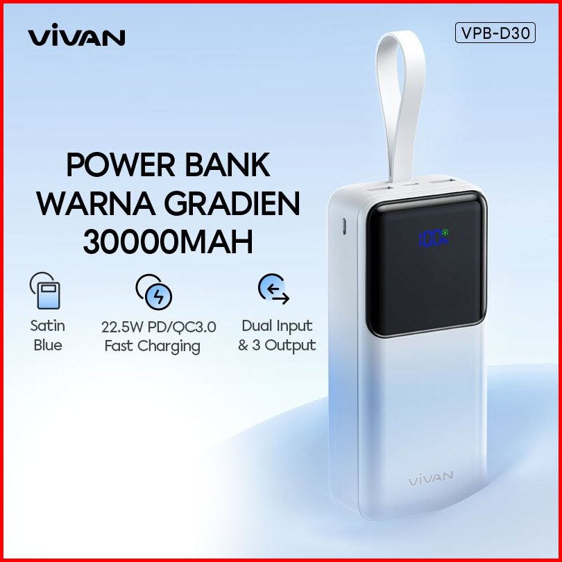 Vivan Powerbank 30000mah Fast Charging Pd 22.5w 2 Input 3 Output Vpb-d30 Garansi 18 Bulan