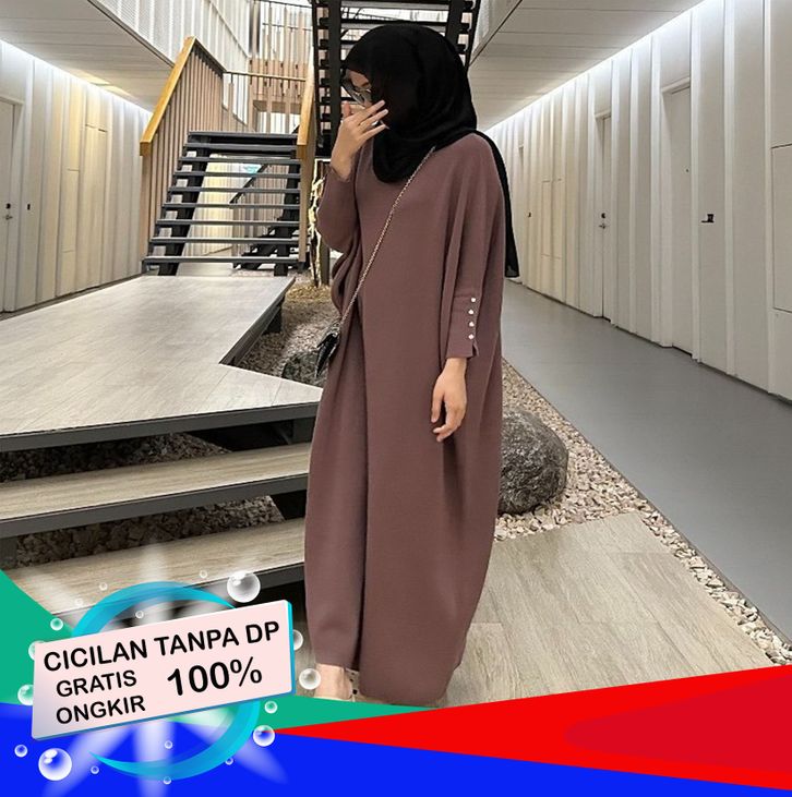 Fashfella - Abaya Gamis Batwing Knit Dress Busui Haji Umroh Lebaran Daily