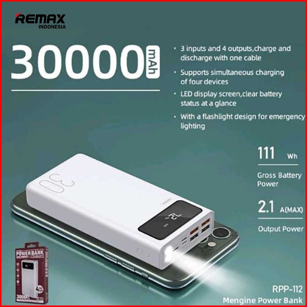 Remax Powerbank Rpp-112 Mengien Series 30000mah 2.4a Output Power Max Fast Charge