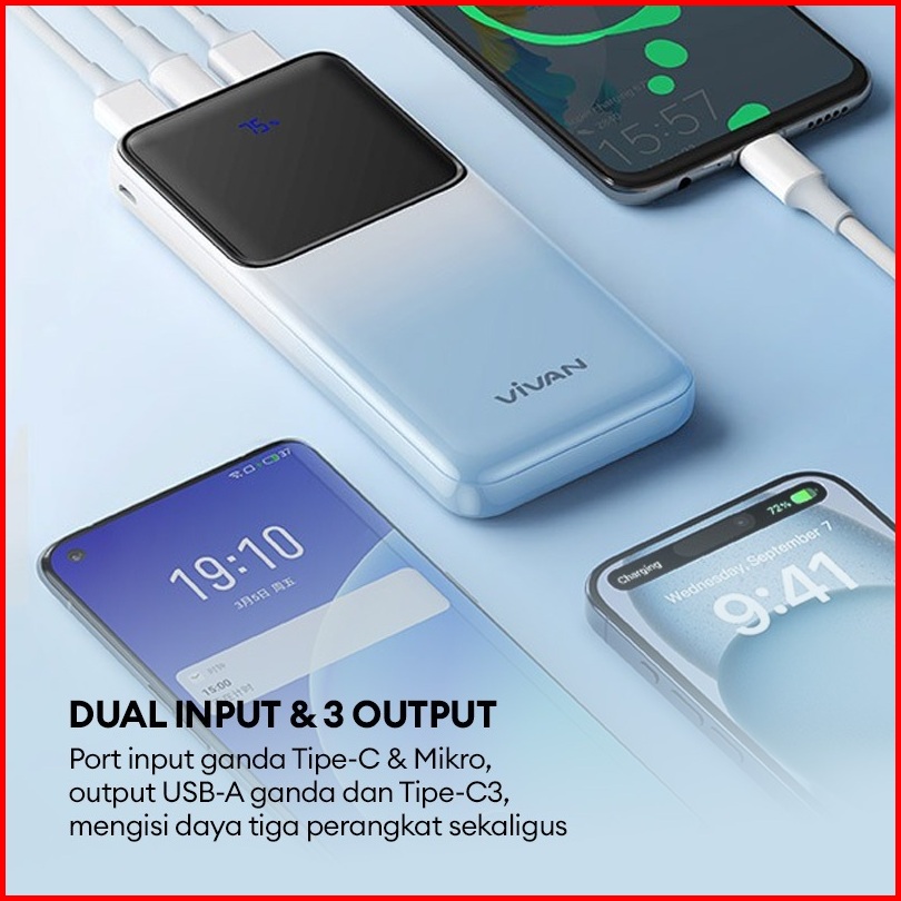 Vivan Power Bank 10000mah 20000mah Powerbank 20w 22.5w Pd 3 Output Dual Input Port Type C Micro Usb Fast Charging Qc 3.0