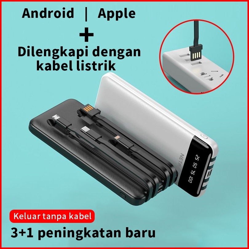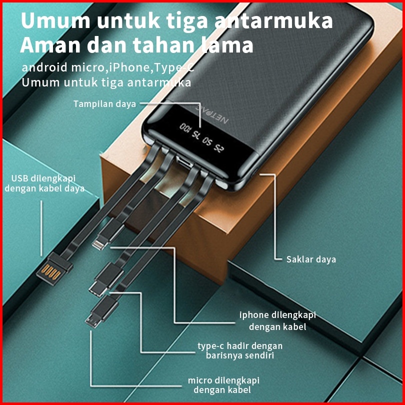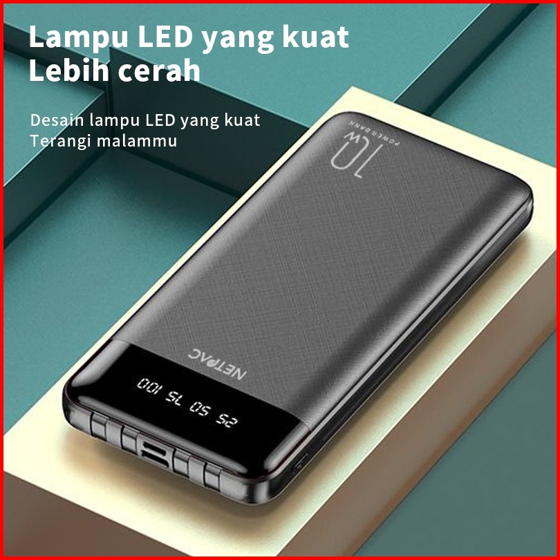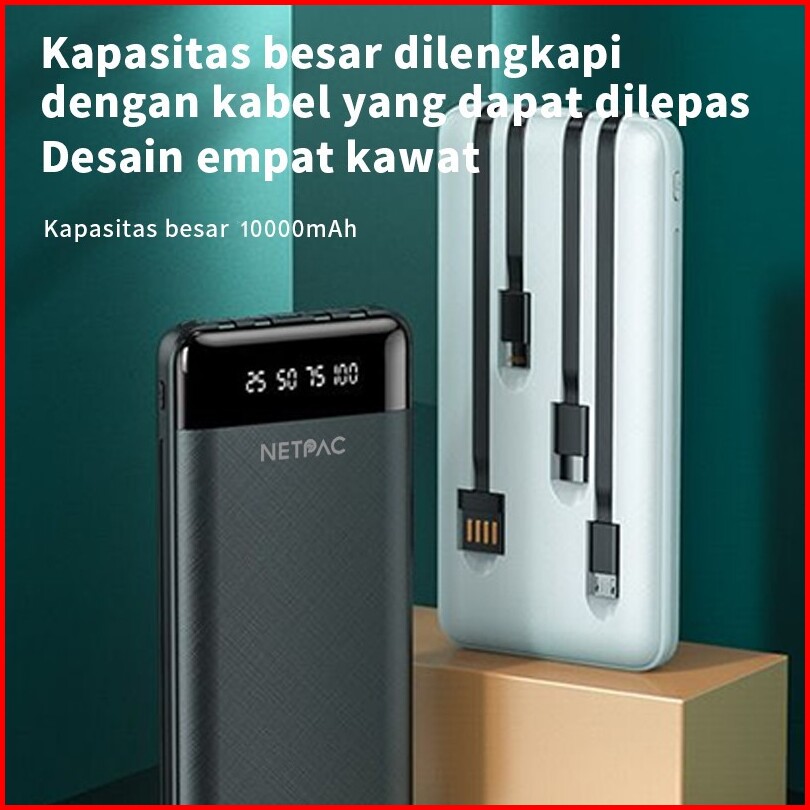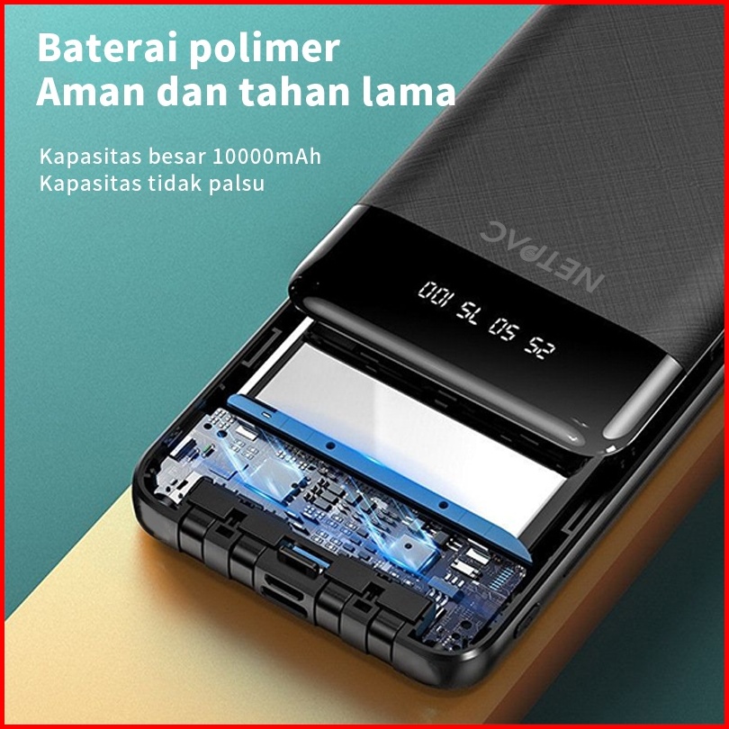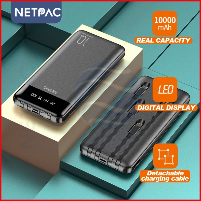 Netpac Powerbank 10000 Mah Fast Charging Lcd Display With Kabel Data Lightning Type-c Micro Usb Power Bank For Iphone Sa