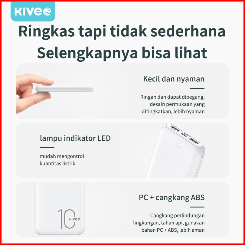 Kivee Powerbank Mini Murah 10000 Mah Fast Charging Black Dan White