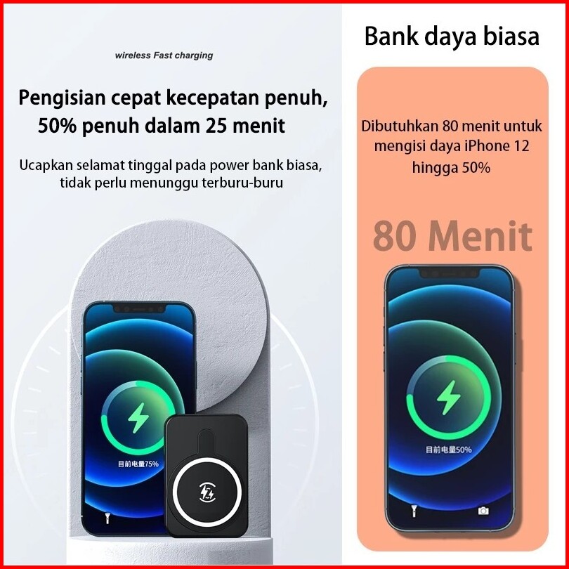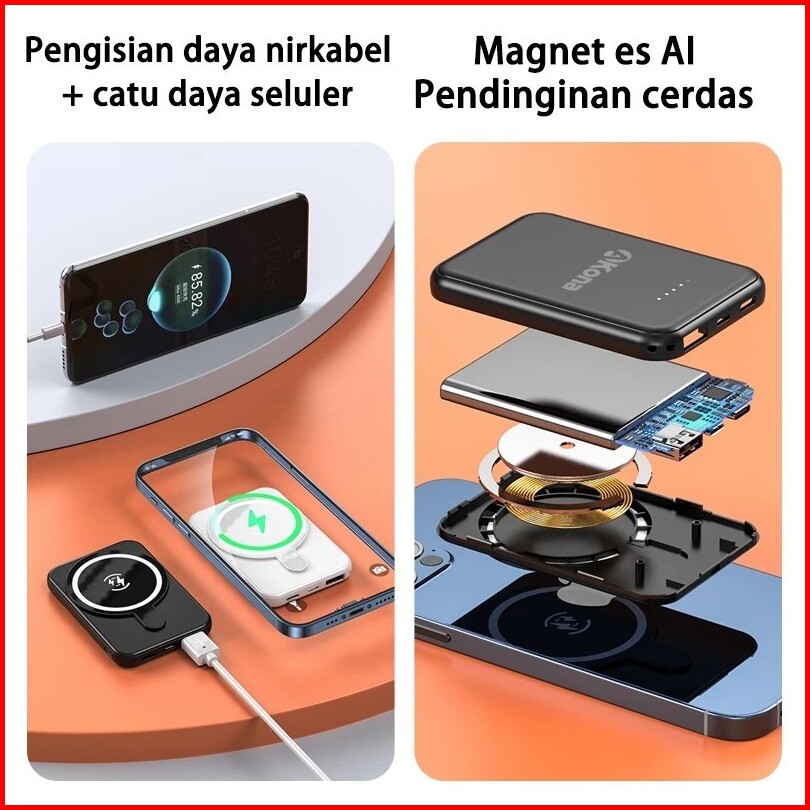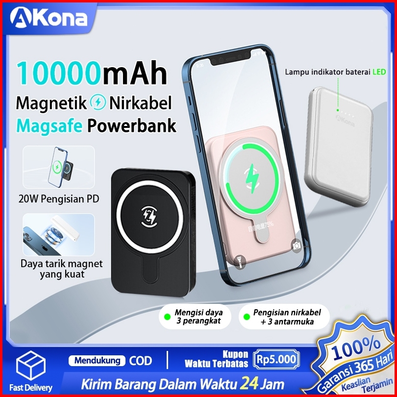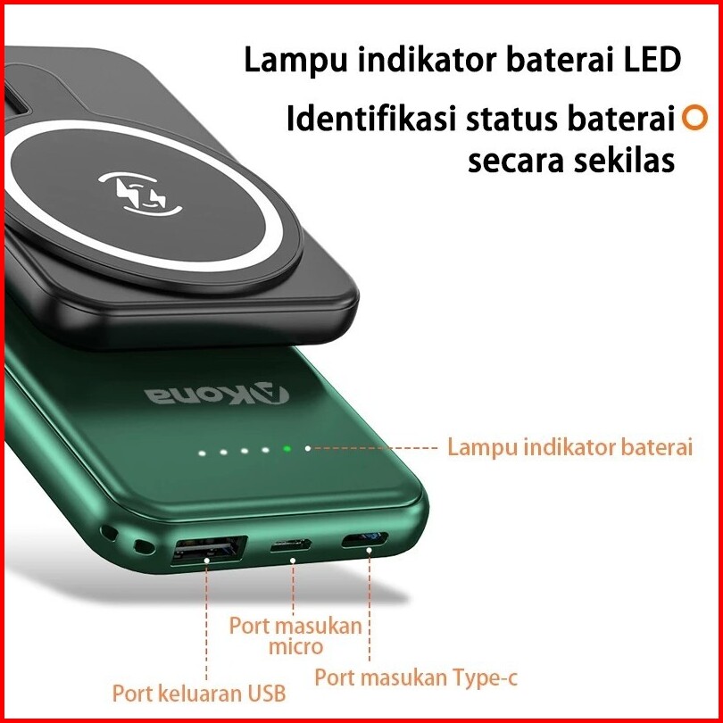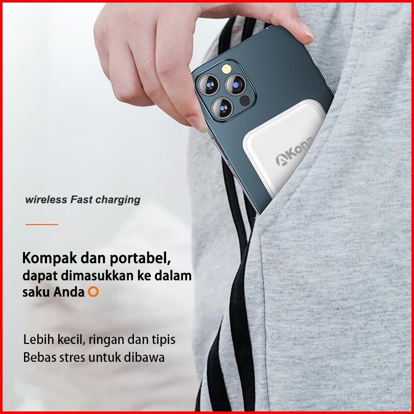 Akona Powerbank Mini 10000mah 20w Fast Charging Magsafe Magnetic Wireless Tampilan Daya Led For Ios Android