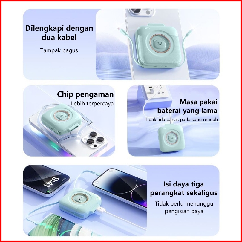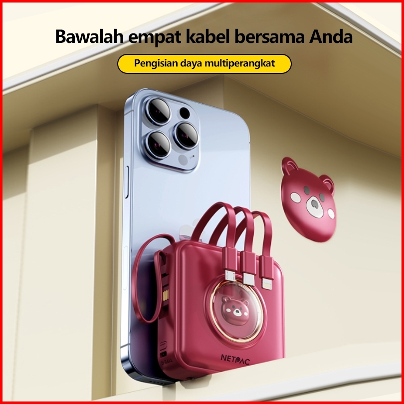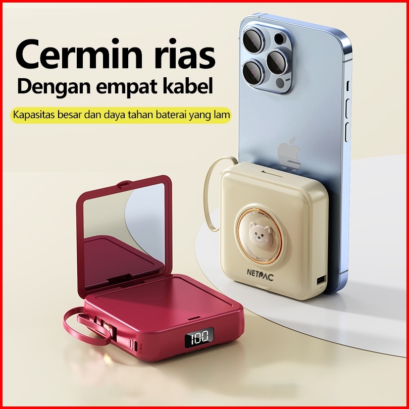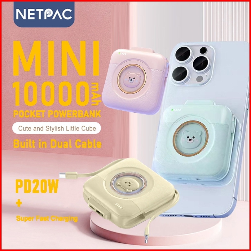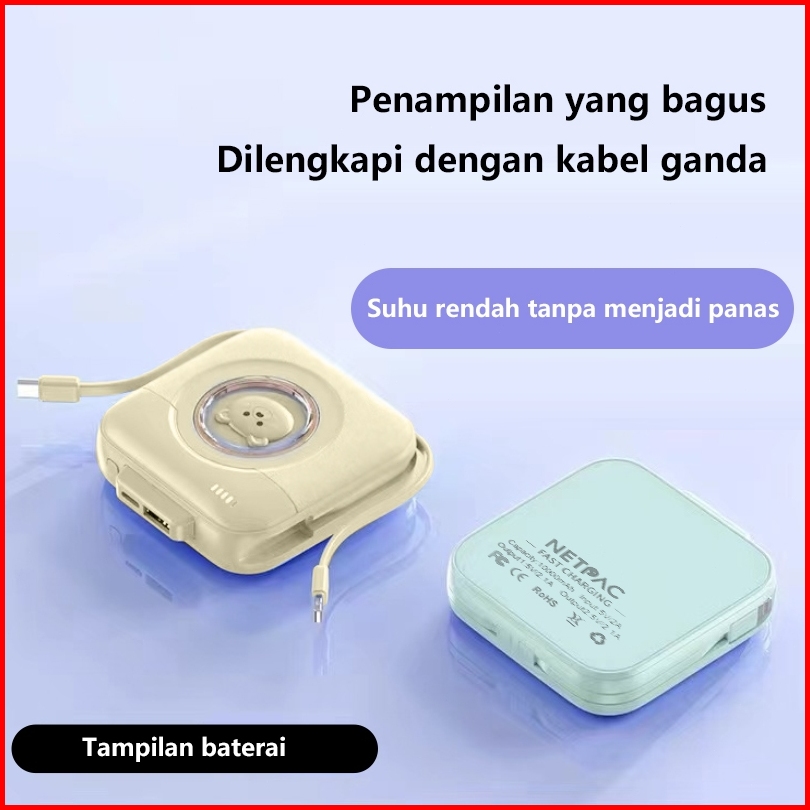 Netpac Powerbank 10000mah Fast Charging Murah Mini Macaron Lucu Design Led With Kabel Data Original