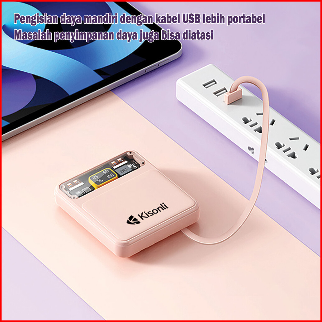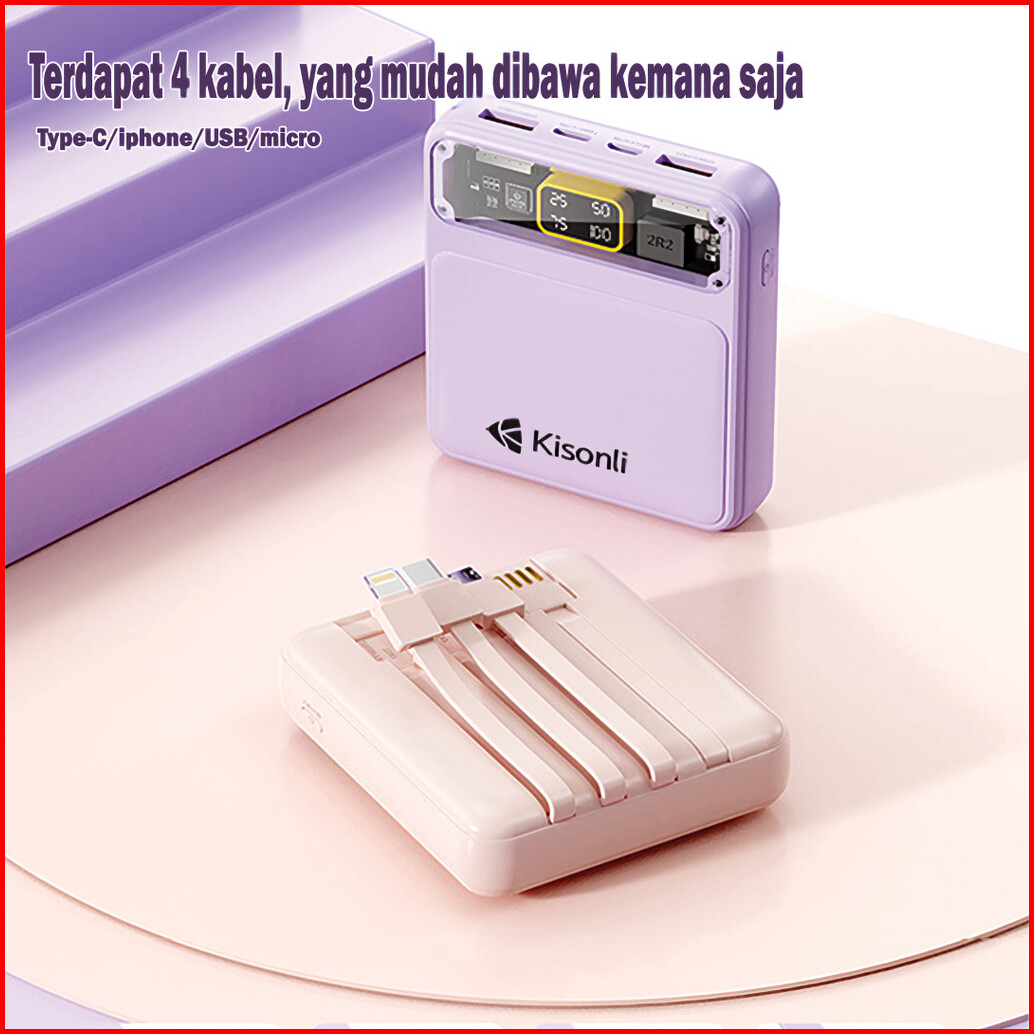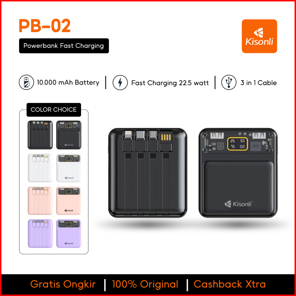 Kisonli Powerbank 10000mah Fast Charging 3 Kabel Built-in Type C Lightning Micro Original Pb02