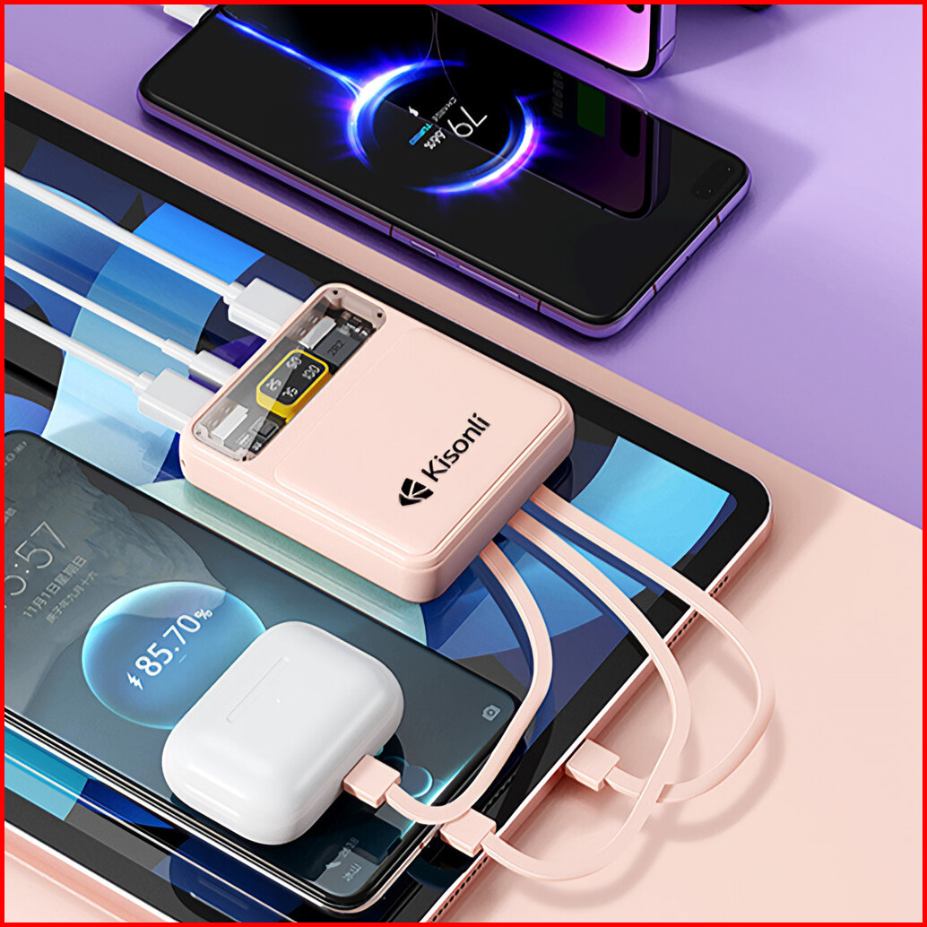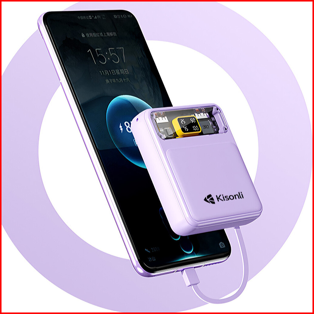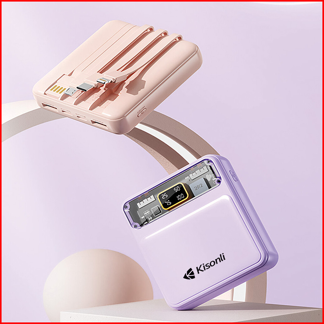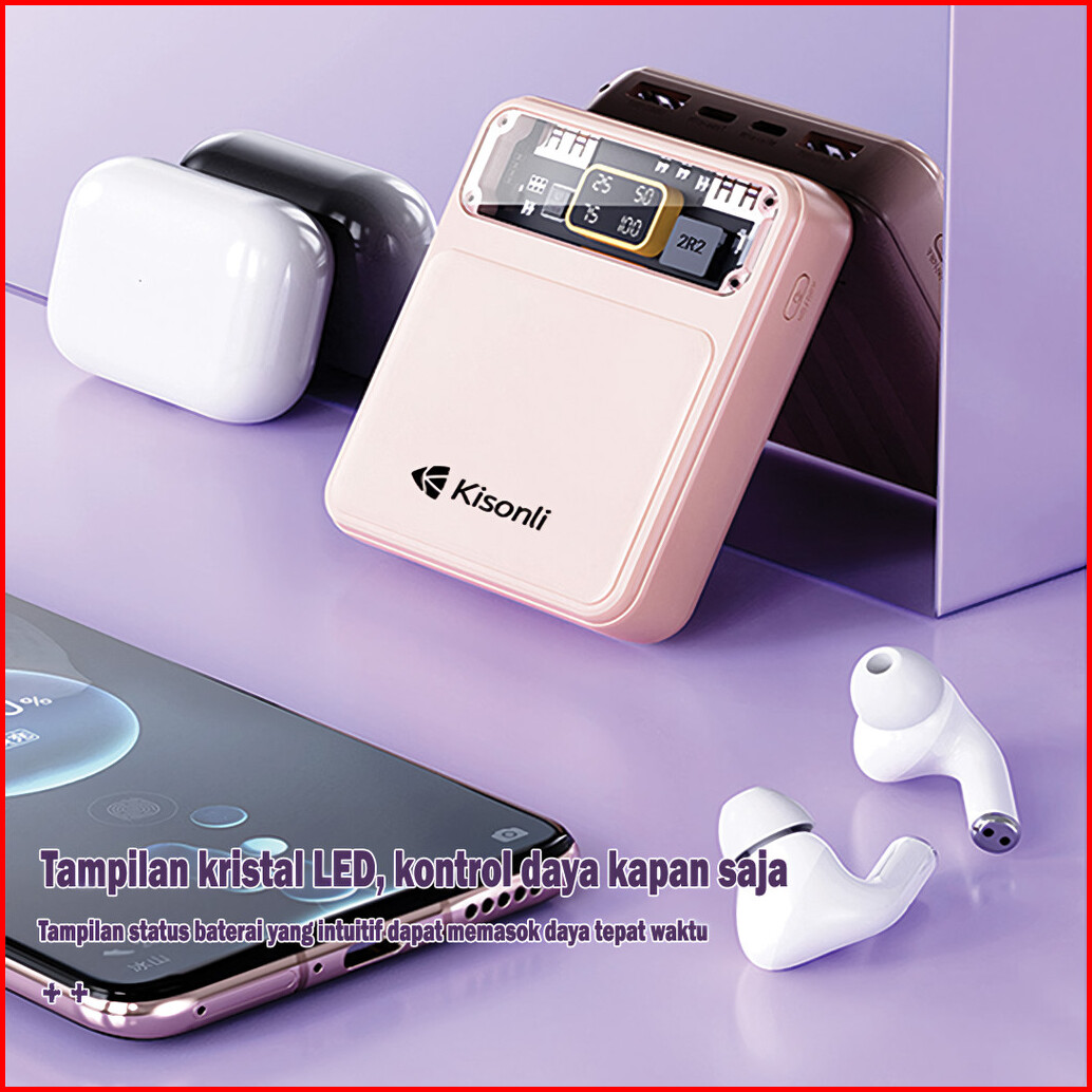 Kisonli Powerbank 10000mah Fast Charging 3 Kabel Built-in Type C Lightning Micro Original Pb02